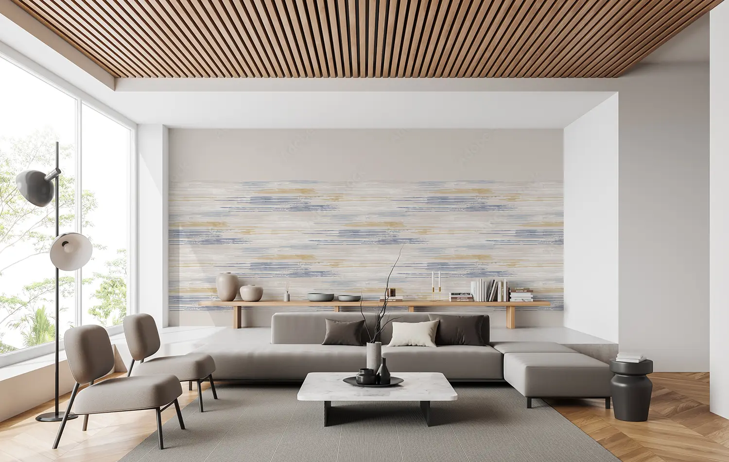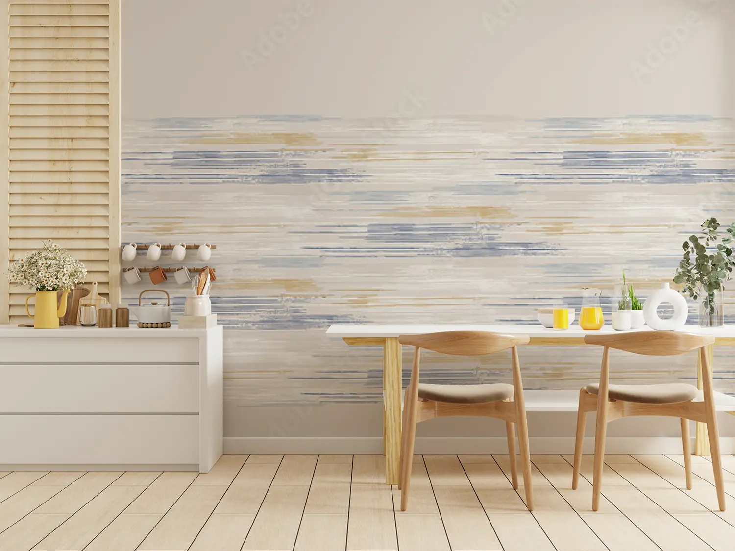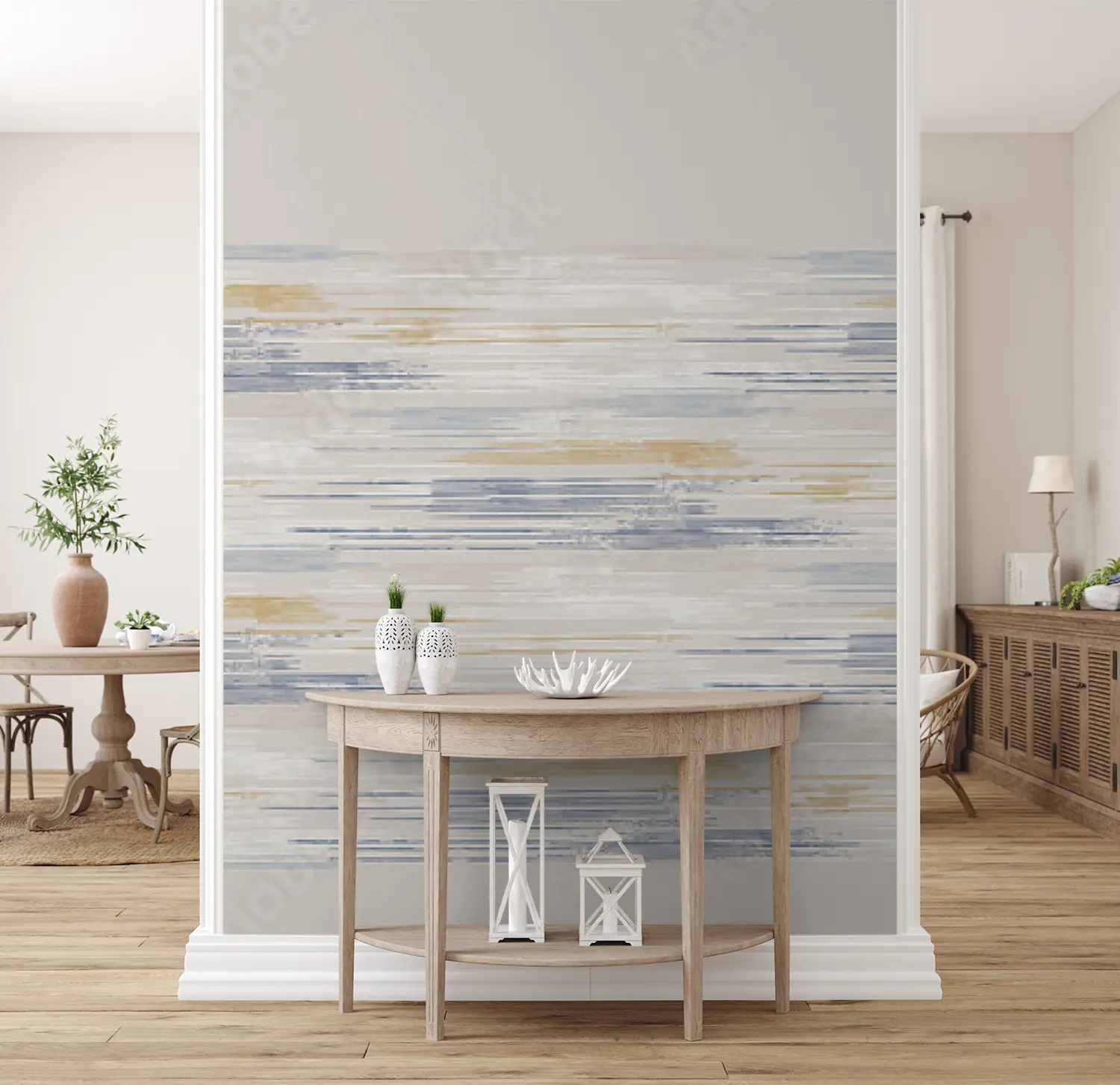 Elevate your home decor with this captivating wall art featuring a soothing pattern of blue, yellow, and white stripes. The calming color palette brings a sense of tranquility to any space, while the abstract design adds a touch of modern elegance. Complementary colors to consider are beige, grey, and soft pink for a cohesive look.