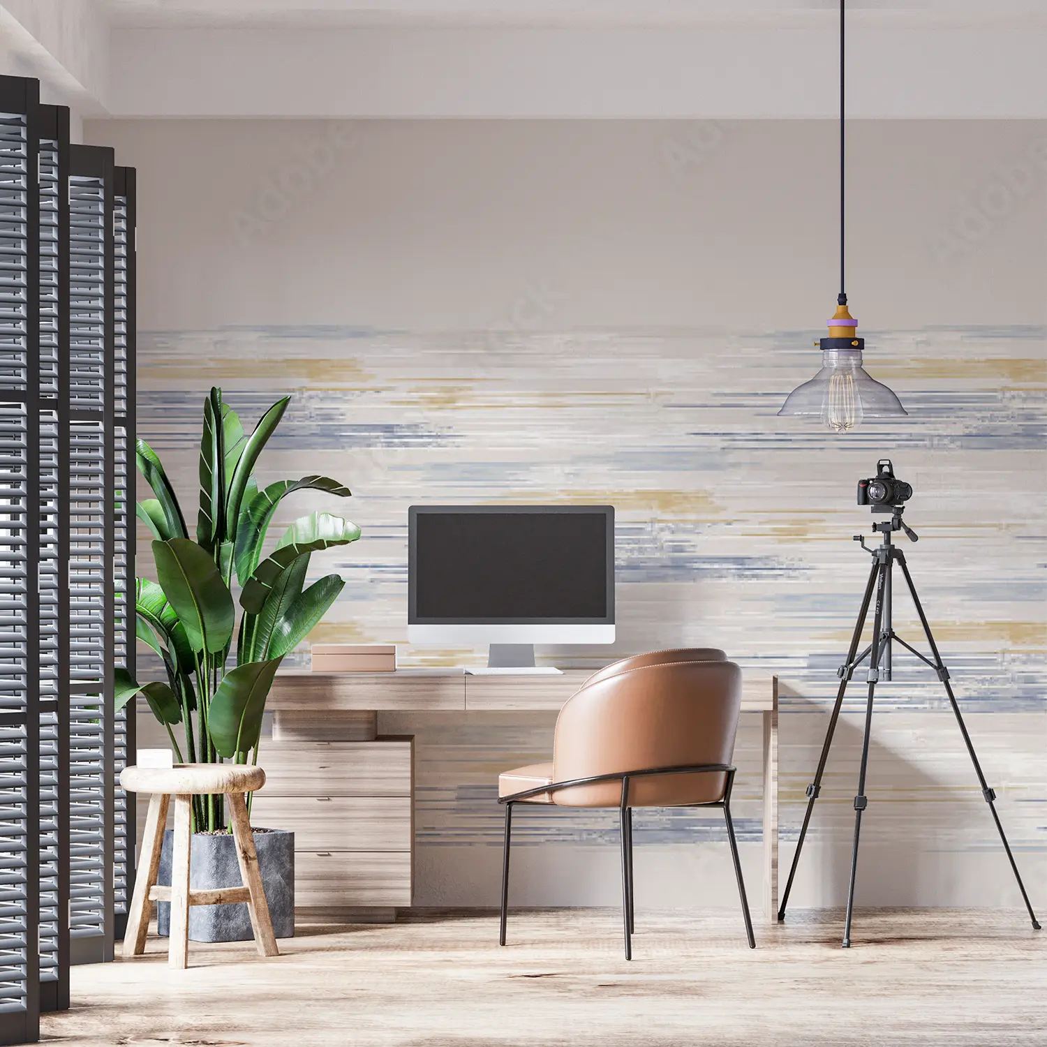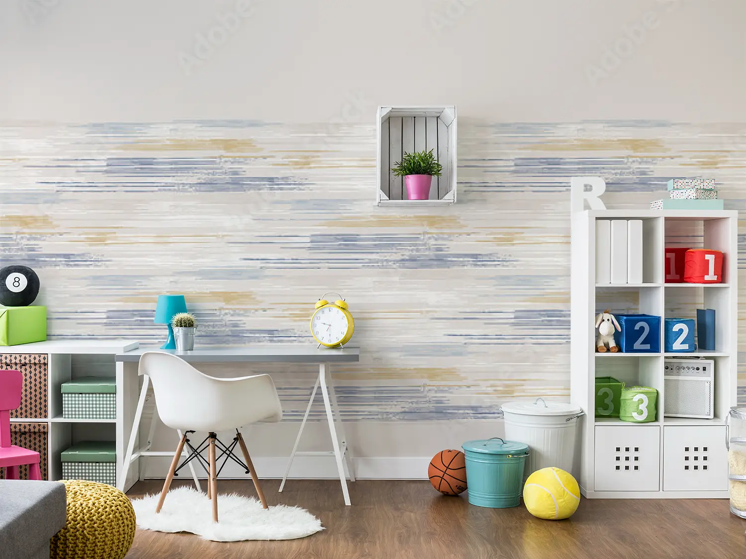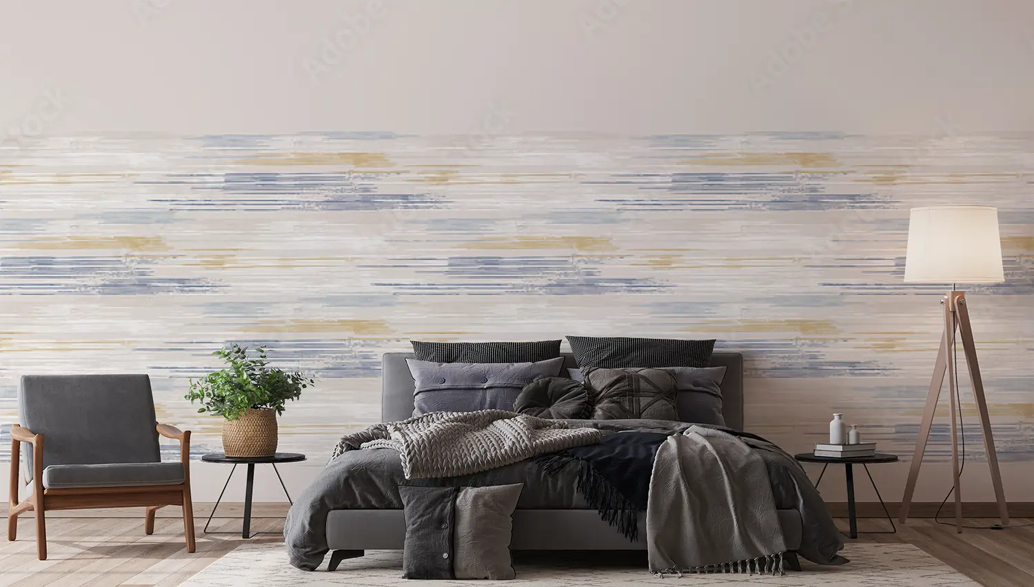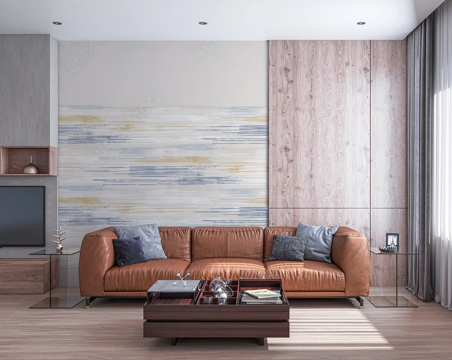 Elevate your home decor with this captivating wall art featuring a soothing pattern of blue, yellow, and white stripes. The calming color palette brings a sense of tranquility to any space, while the abstract design adds a touch of modern elegance. Complementary colors to consider are beige, grey, and soft pink for a cohesive look.