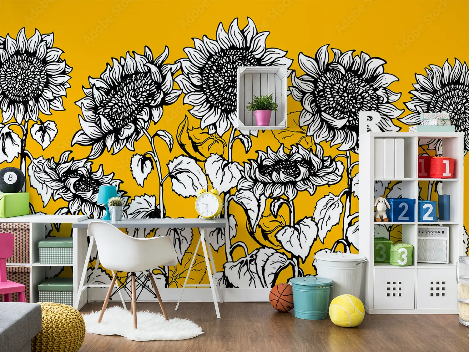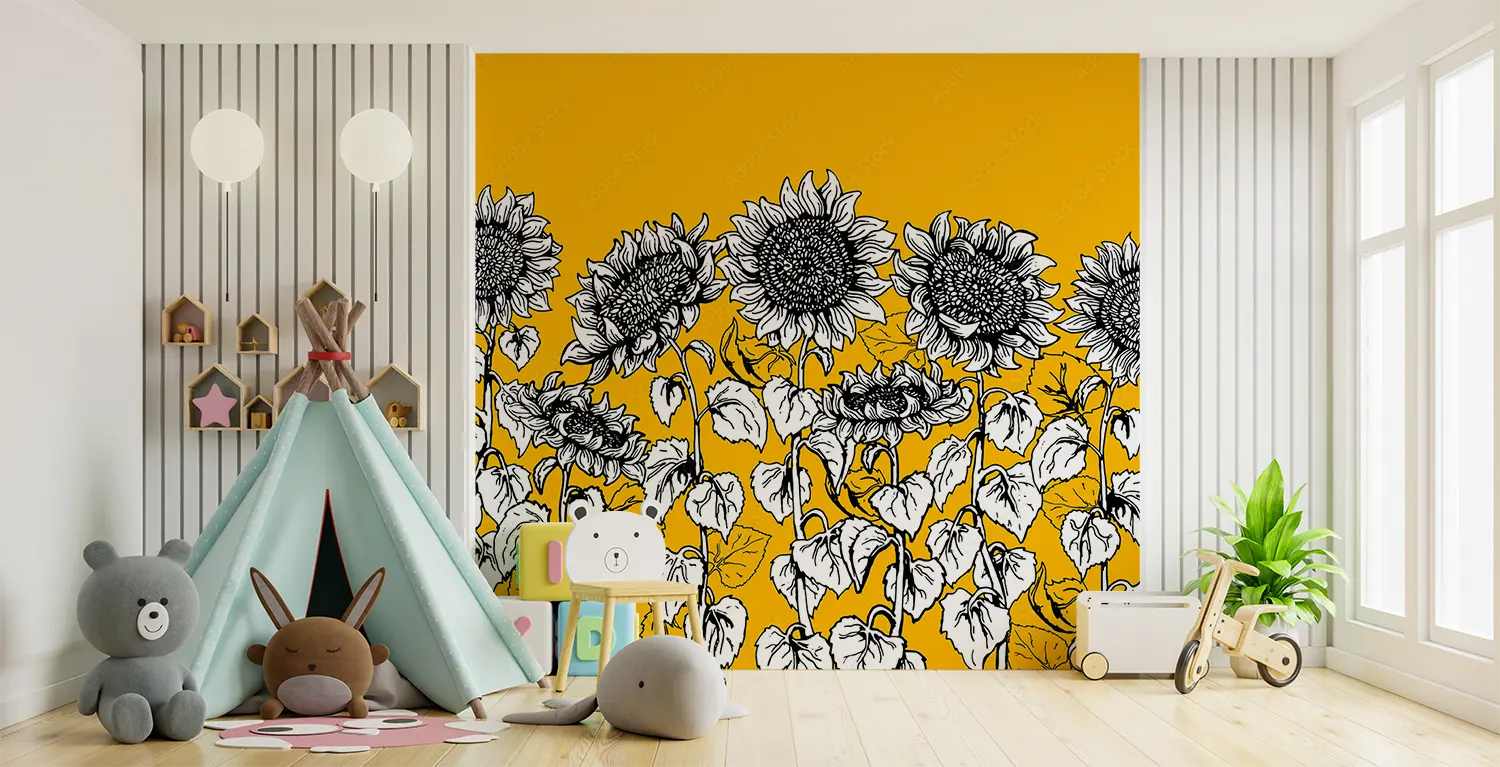 Transform your space with the stunning beauty of a sunflower-themed wall art. This captivating piece features a bunch of sunflowers against a cheerful yellow background, adding a pop of color and nature-inspired charm to any room. Complementary colors to consider incorporating in your decor include black, white, and shades of yellow for a cohesive and inviting aesthetic.