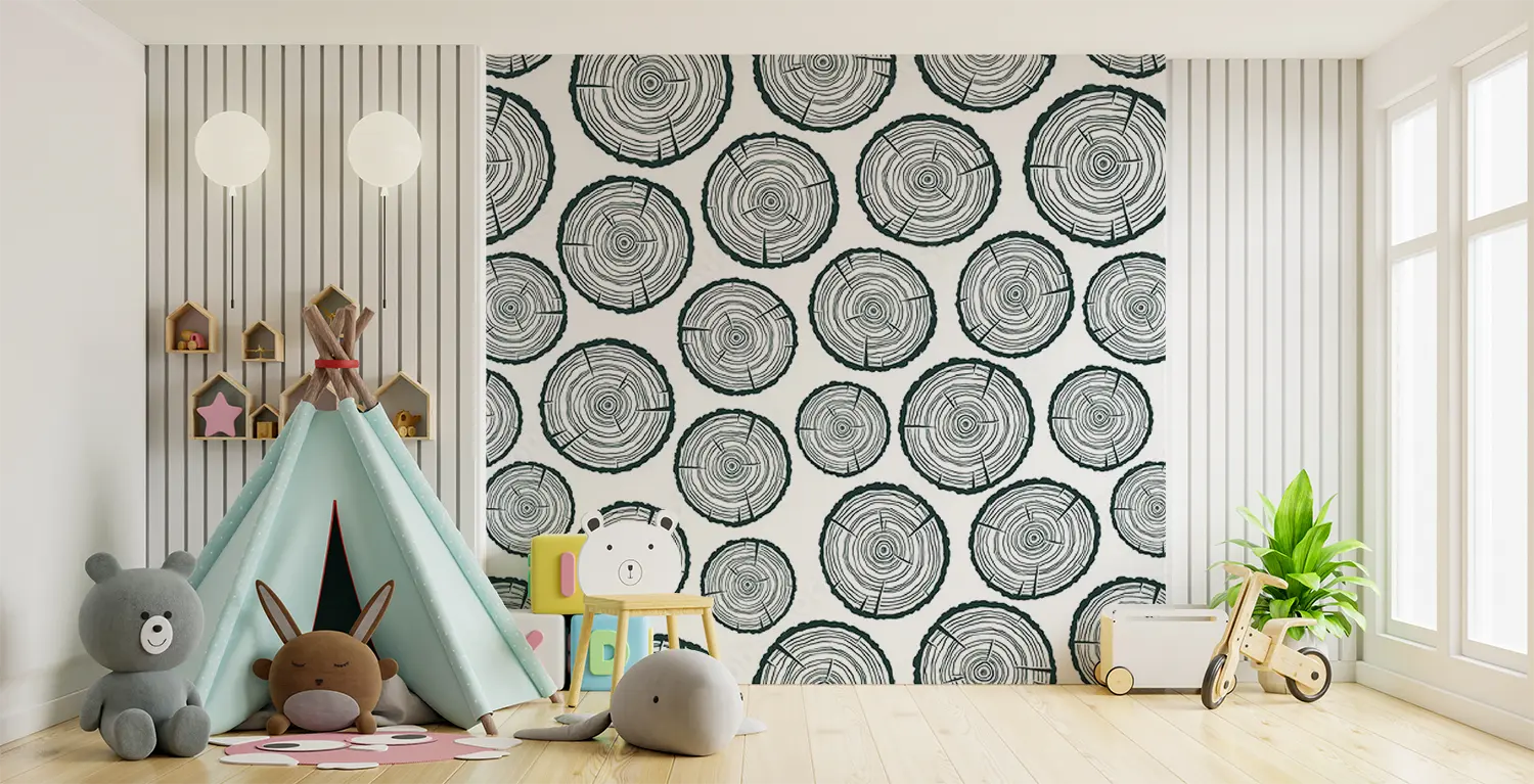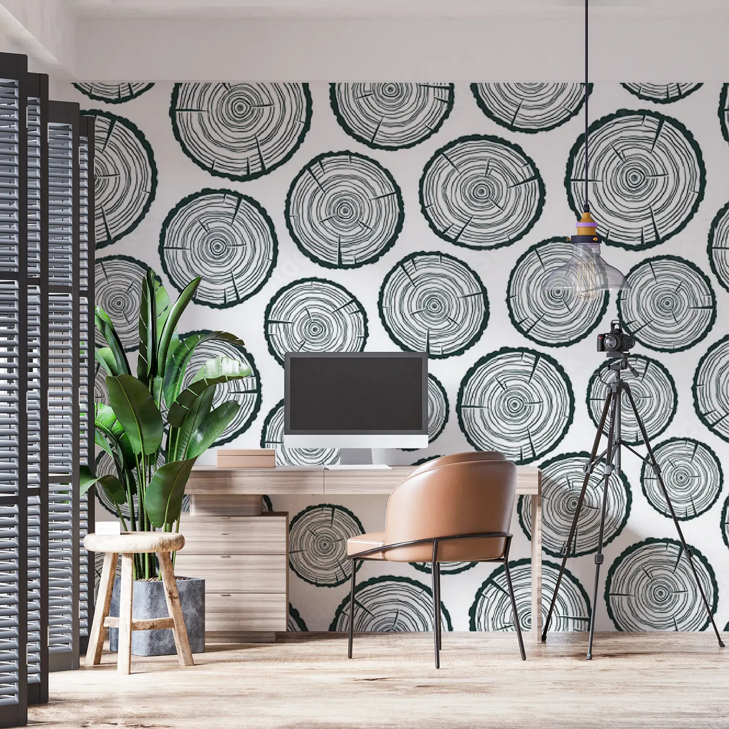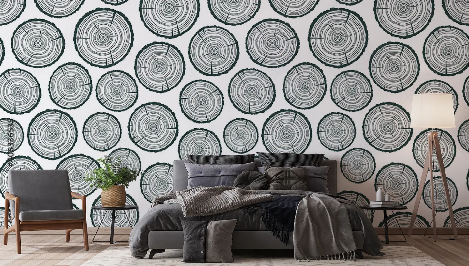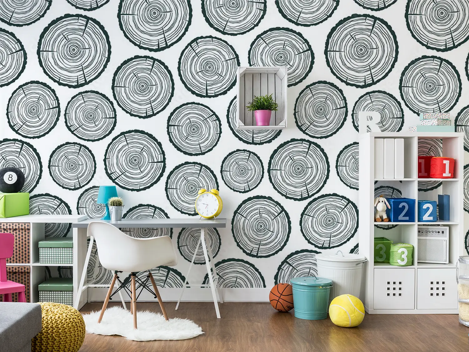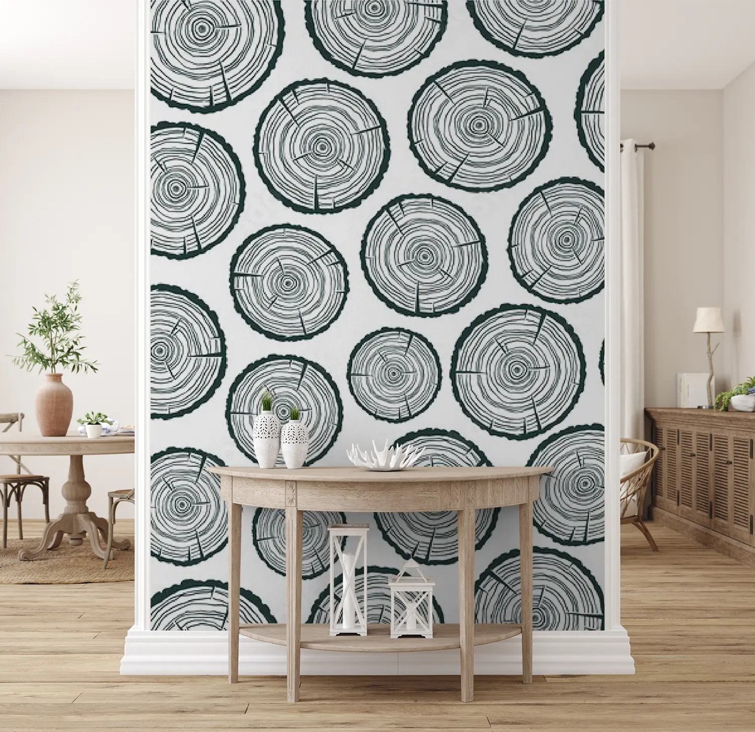 Transform your space with a stunning image showcasing the intricate pattern of tree rings on a white background. This captivating design brings a touch of nature indoors, adding a rustic yet modern aesthetic to your walls. Complementary colors like shades of grey, white, and earth tones will enhance the beauty of this nature-inspired decor piece.
