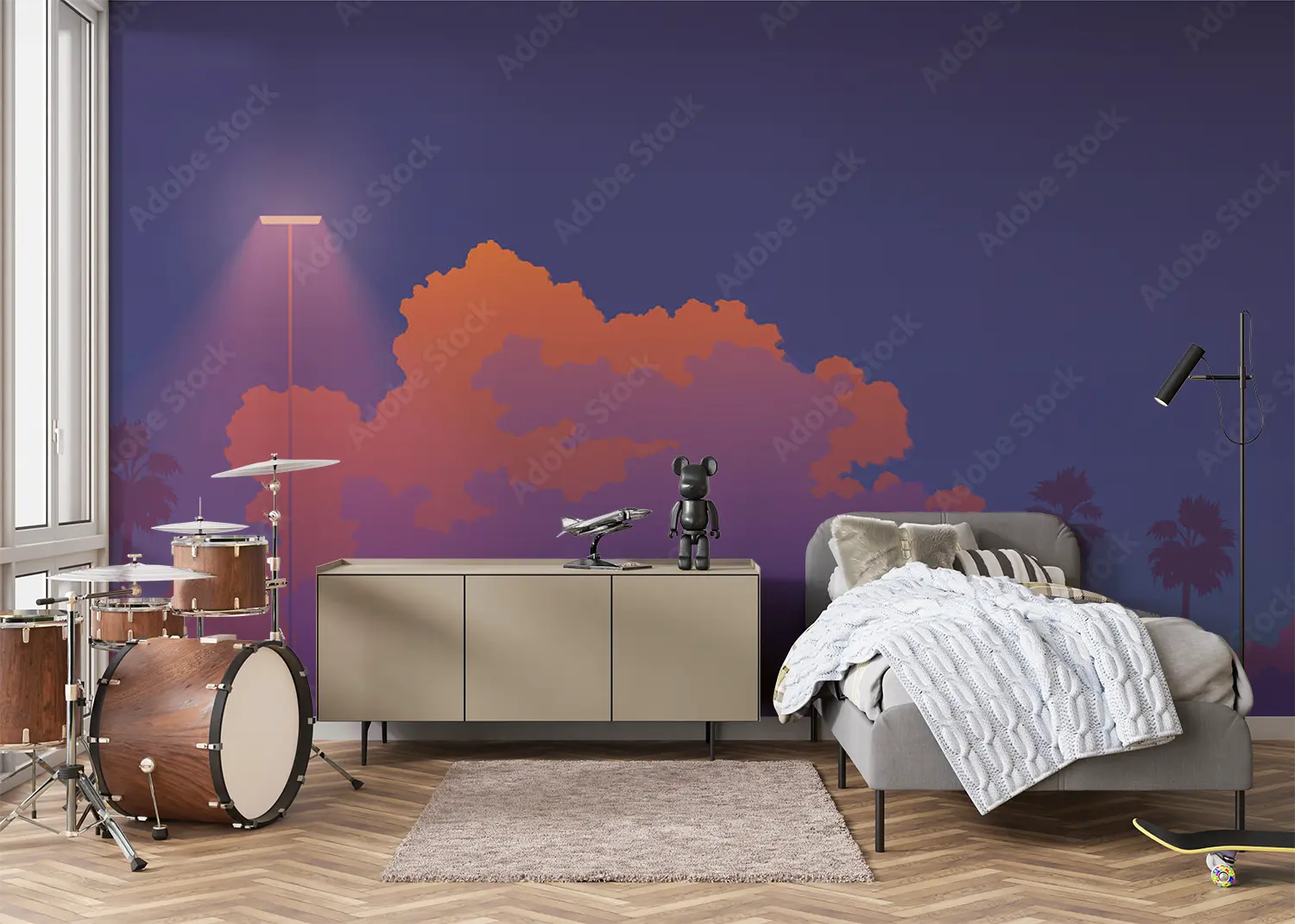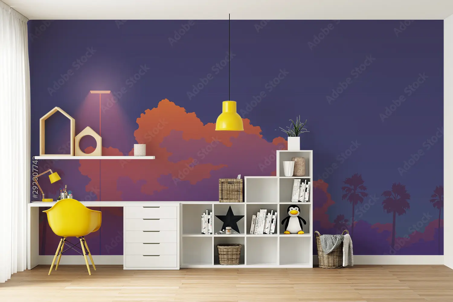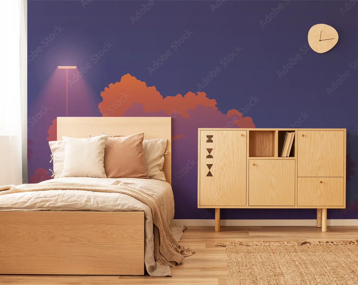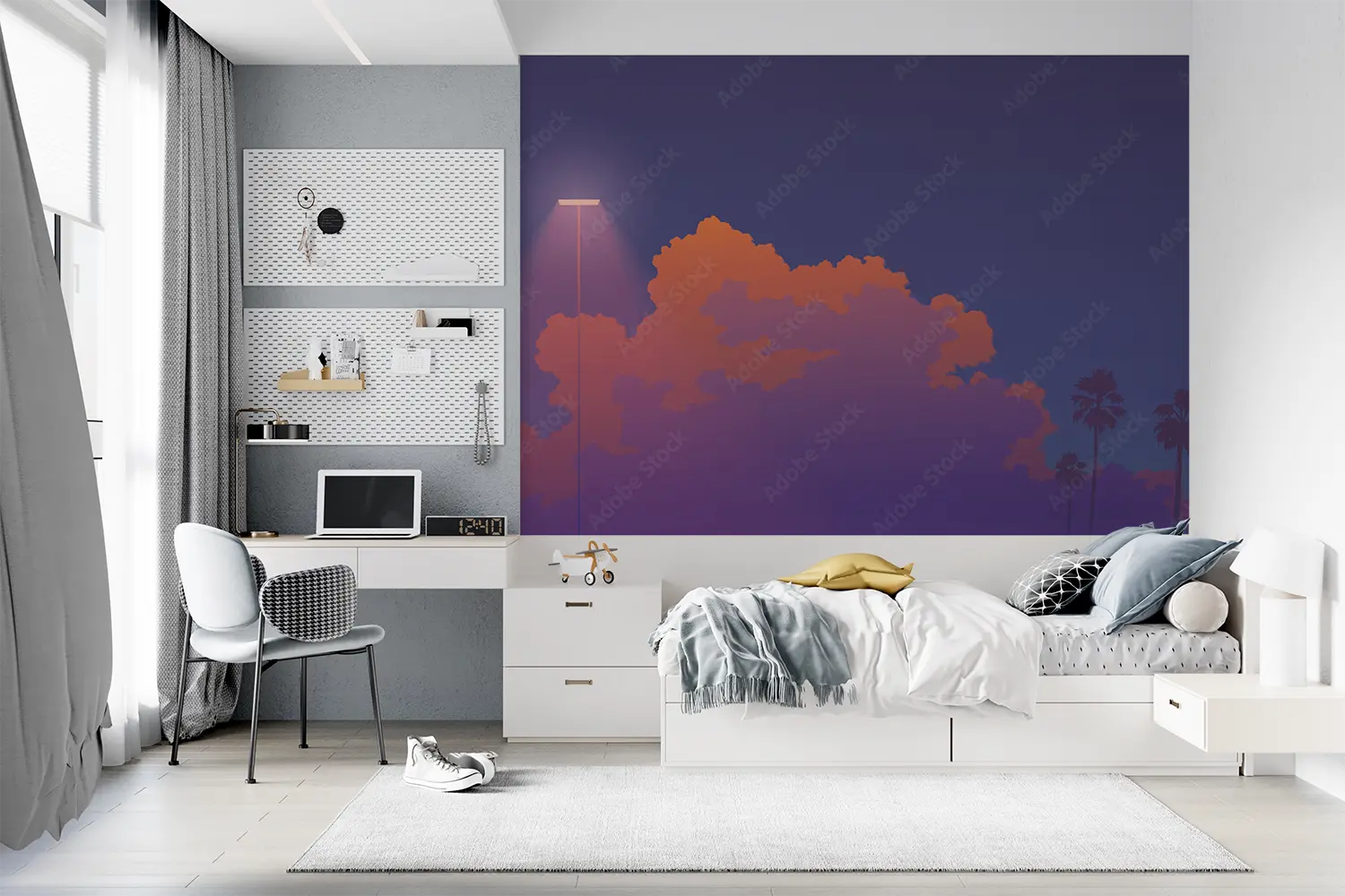 Transform your space with this captivating wall art featuring a serene palm tree-lined street illuminated by a charming street light. The vibrant colors and dreamy night scene will add a touch of exotic beauty to any room. Complementary colors include shades of purple, orange, and pink to enhance the tropical ambiance of your home.
