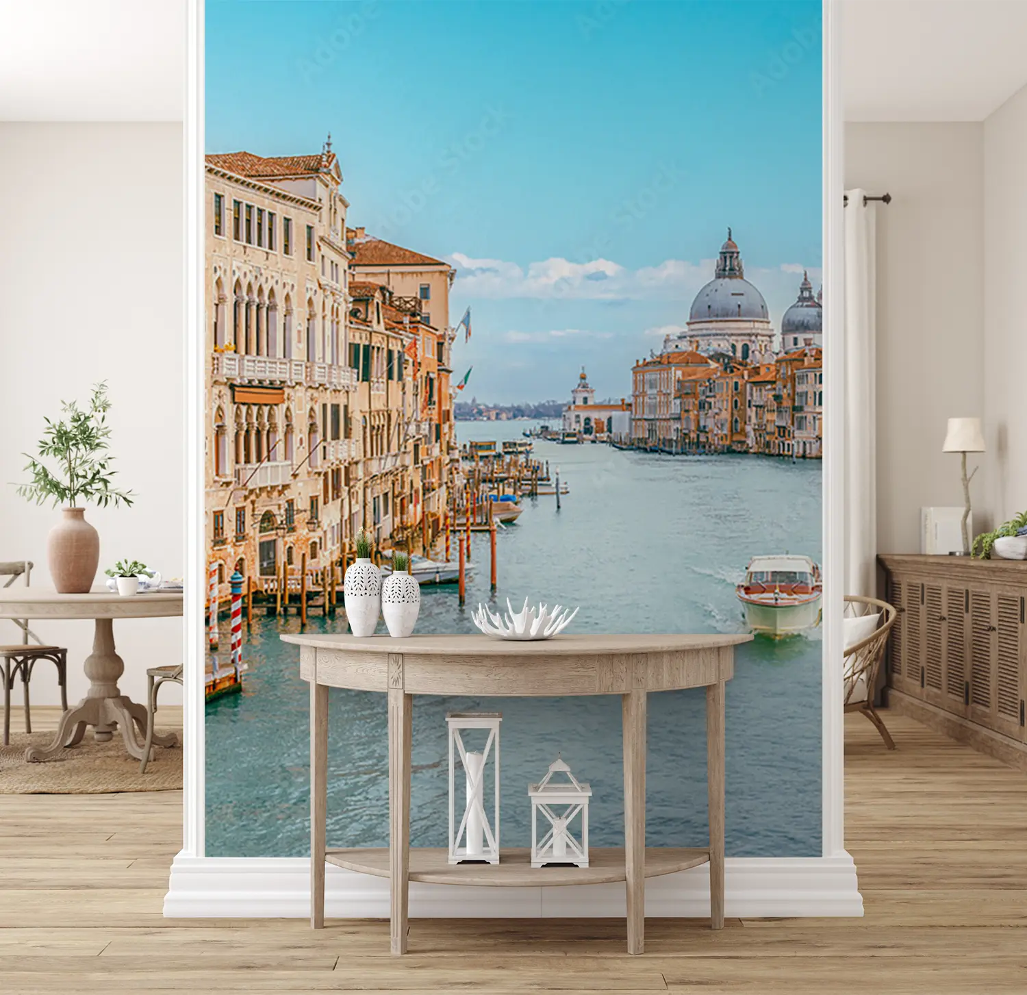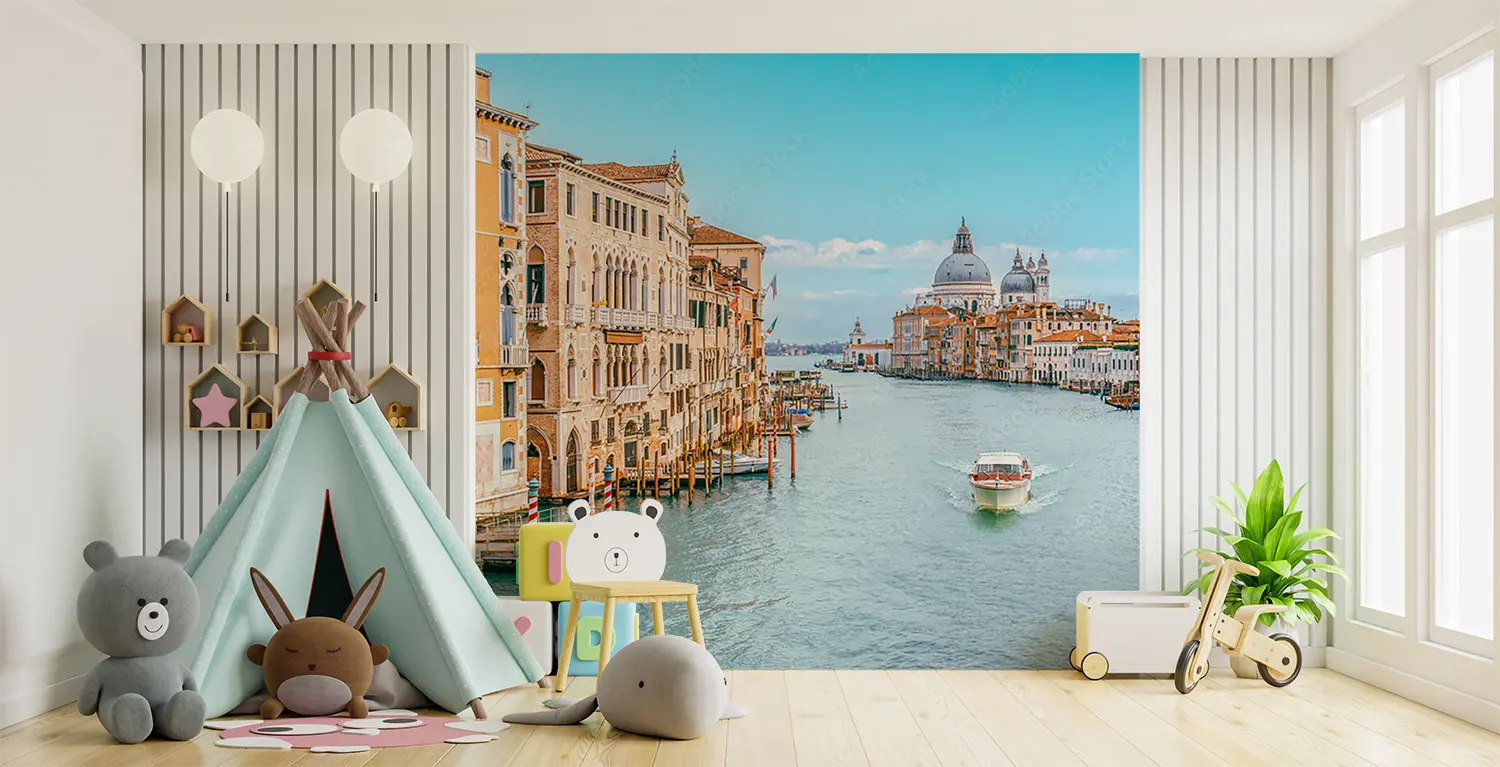 Transform your space with a stunning depiction of a boat gliding down a picturesque Venetian canal. This captivating wall art captures the essence of travel and relaxation, adding a touch of elegance to any room. Complementary colors to consider include soft blues, earthy browns, and subtle whites to enhance the serene vibe of this scene.