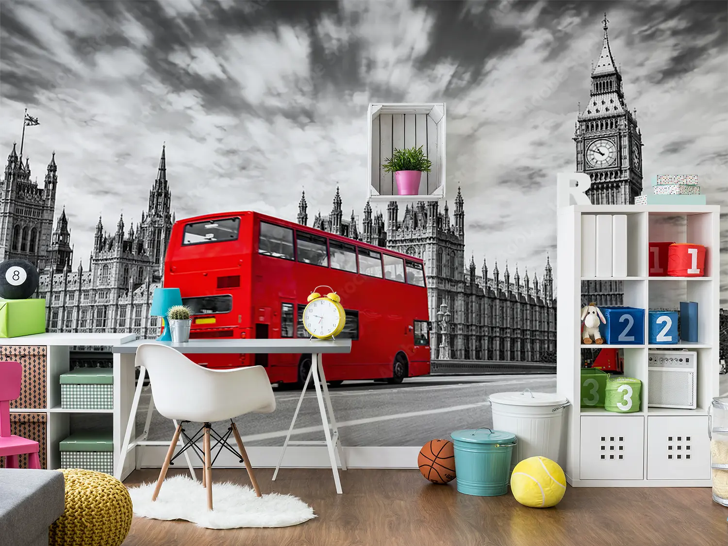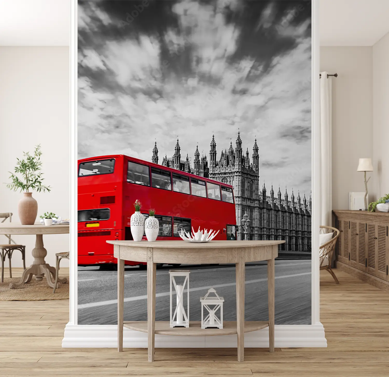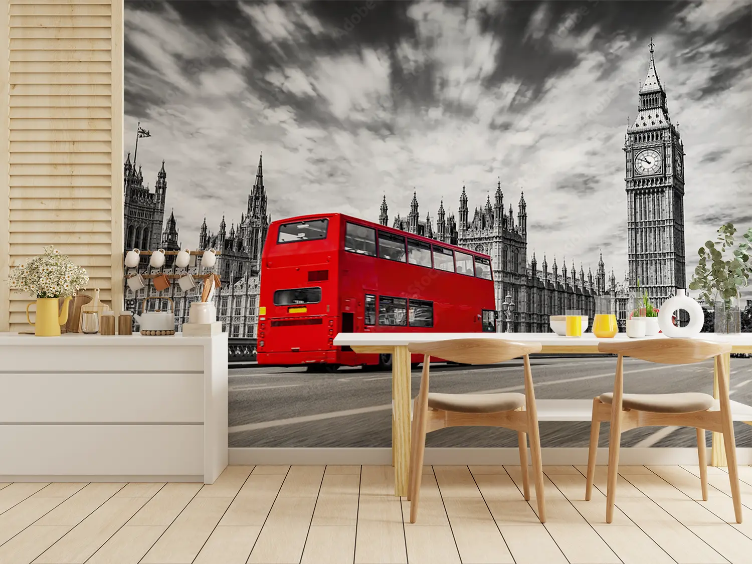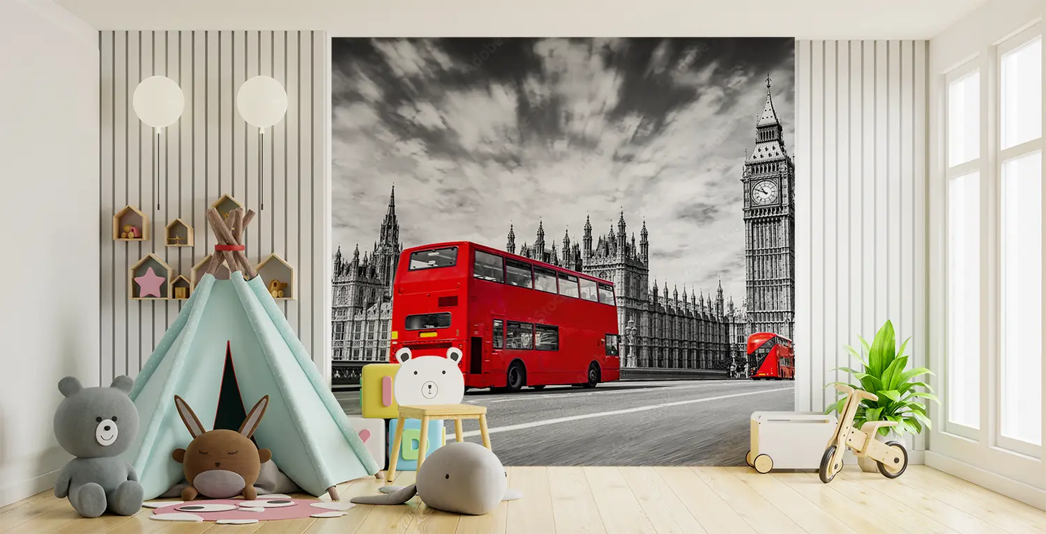 Bring the bustling streets of London into your home with this vibrant wall art. The red double decker bus adds a pop of color and charm to any room, creating a lively and dynamic atmosphere. Complementary colors like deep navy blue and bright white can enhance the scene, making it a perfect addition to your home decor.