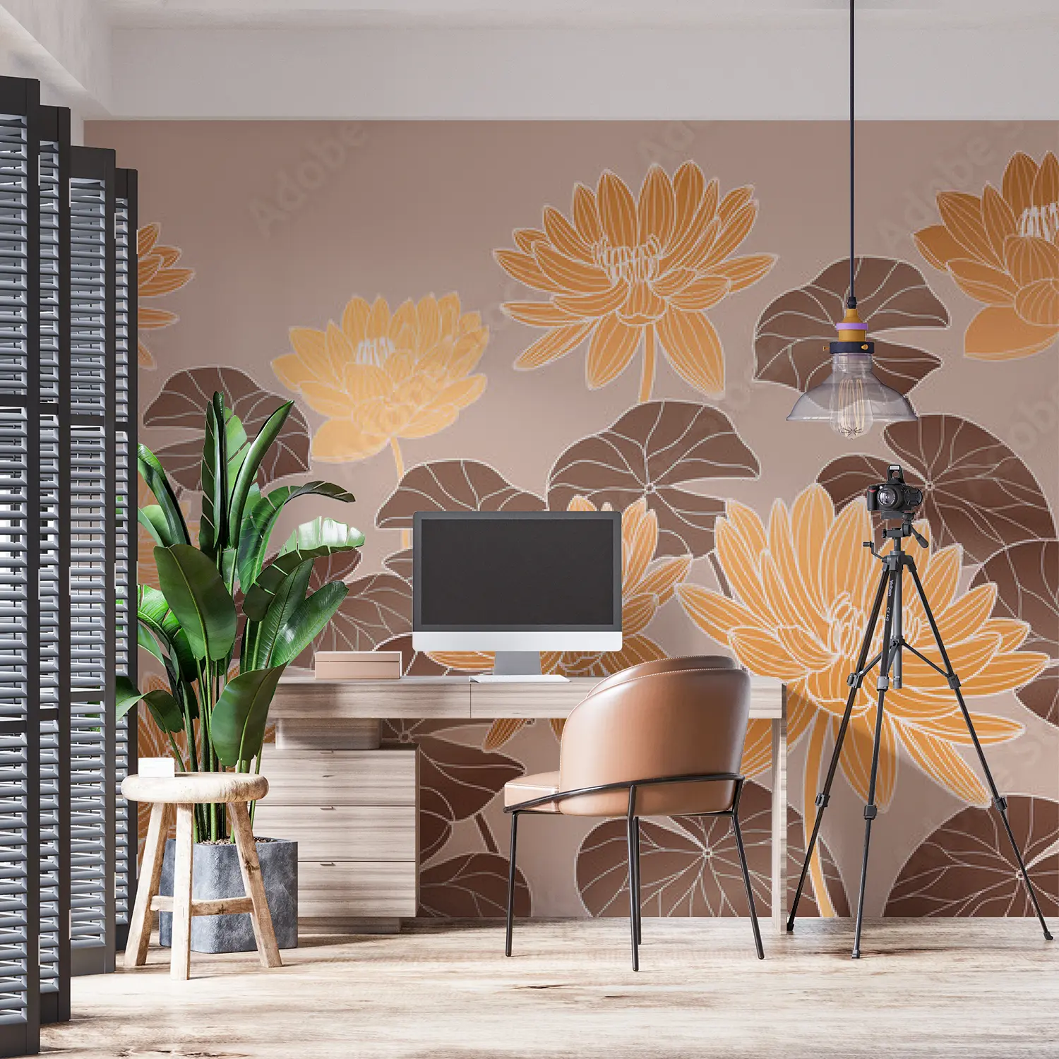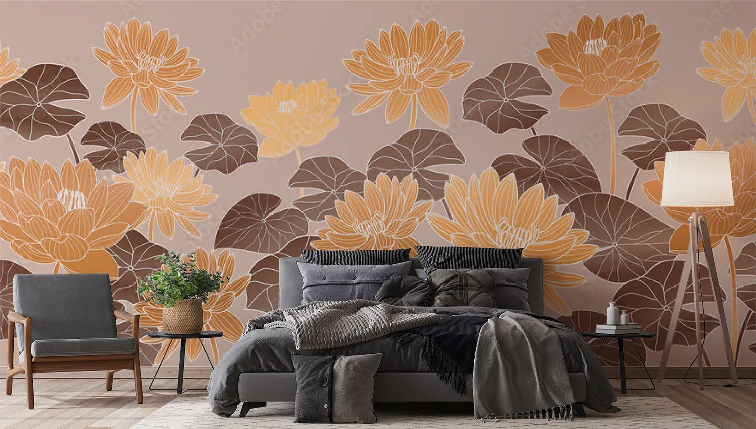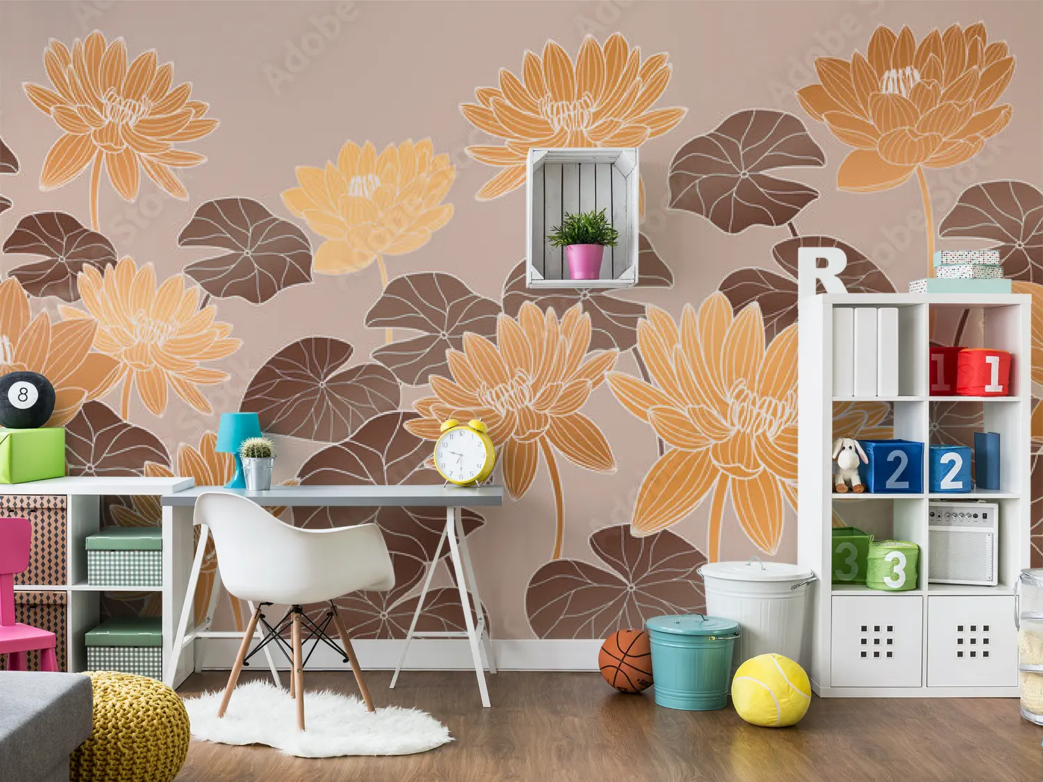 Transform your living space with this stunning floral masterpiece, featuring a beautiful array of orange and yellow flowers on a beige background. The intricate pattern and colorful design add a touch of elegance to any room. Complementary colors to consider for your decor include warm tones like brown, orange, and yellow. Bring nature indoors with this captivating wall art.