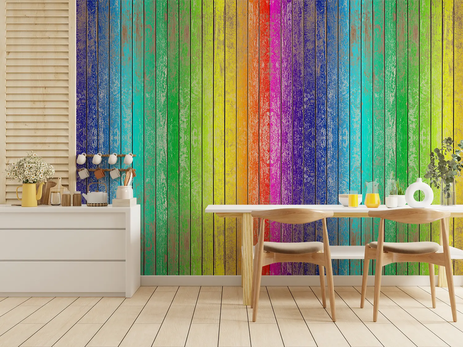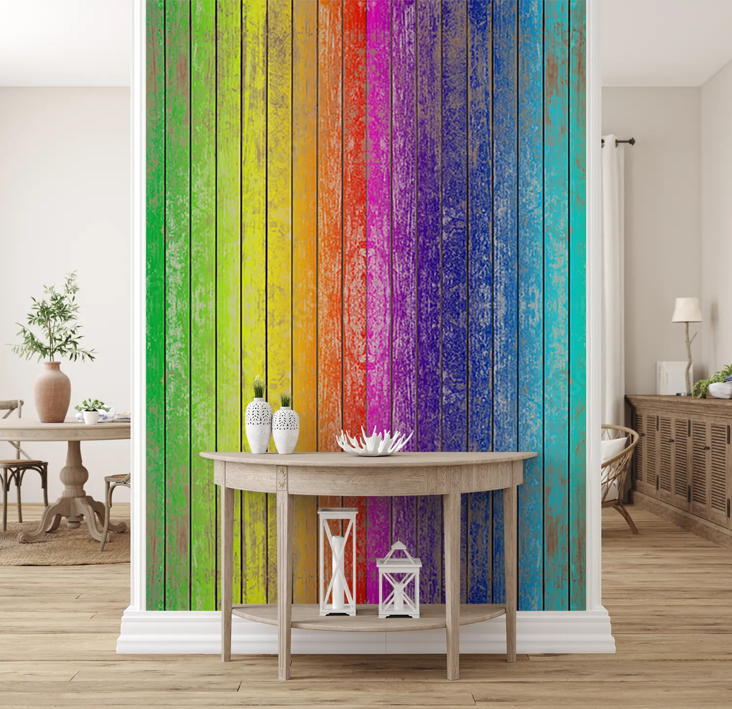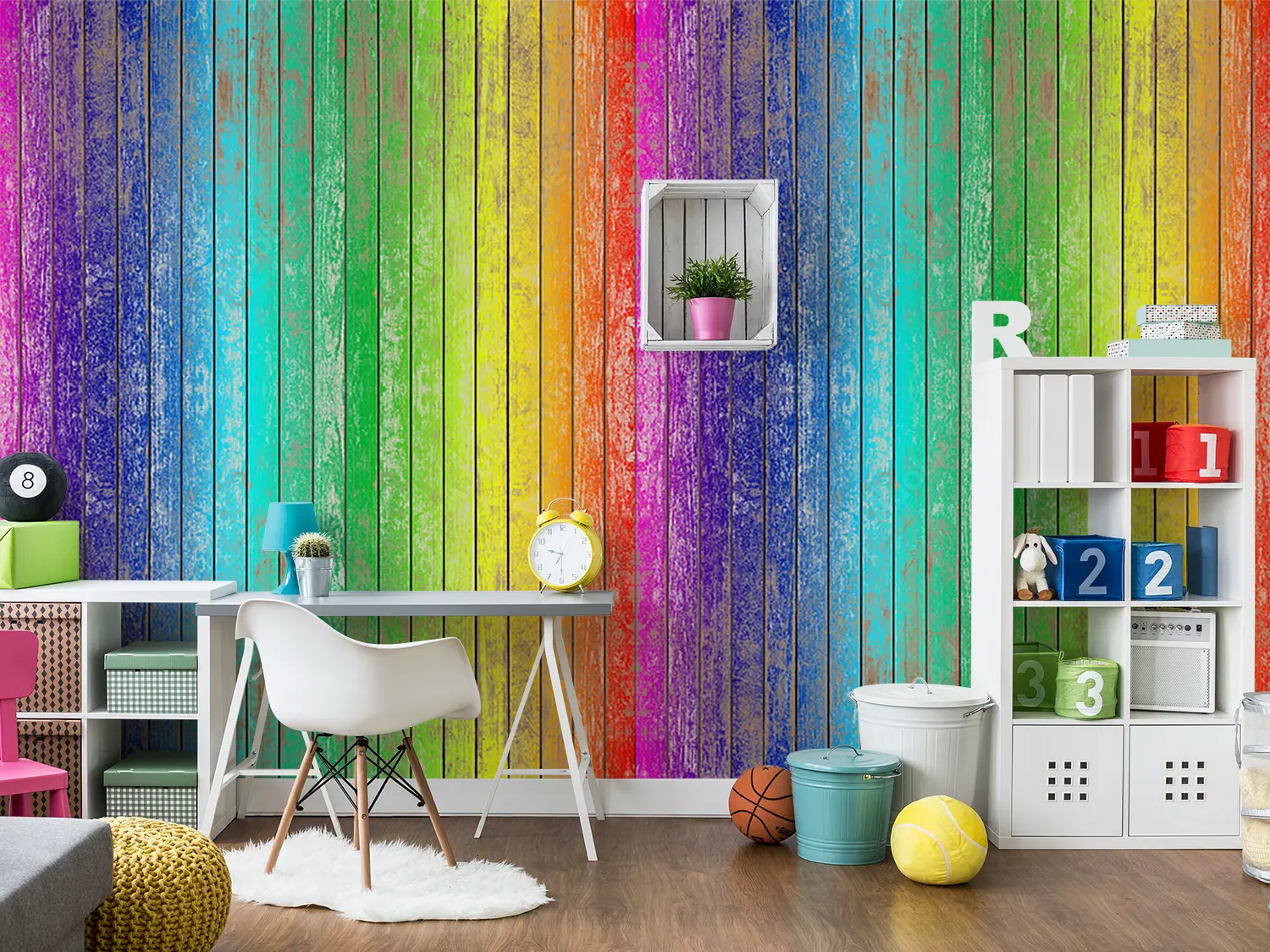 Transform your space with this stunning rainbow wood wall decor, featuring a colorful background of paint that adds a pop of creativity to any room. The vibrant hues and unique pattern create a captivating focal point, perfect for enhancing your home decor. Complement this piece with accents in shades of green, blue, and purple for a cohesive and stylish look.