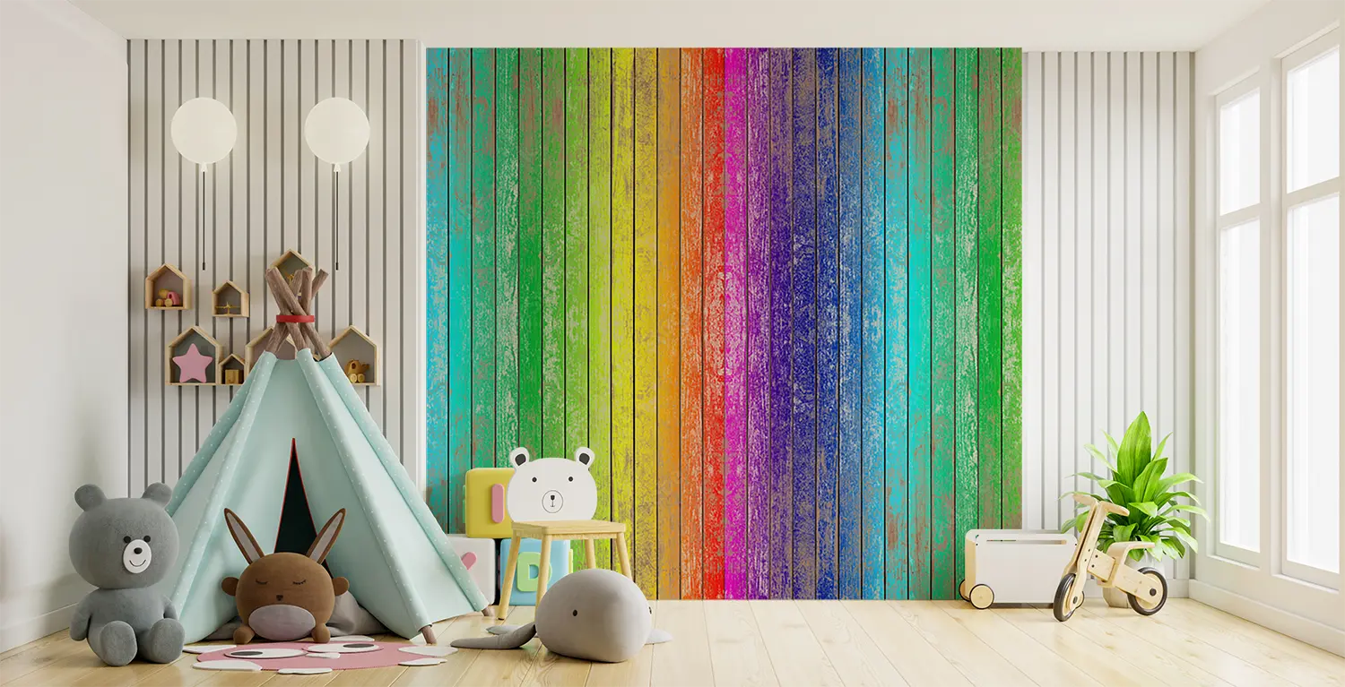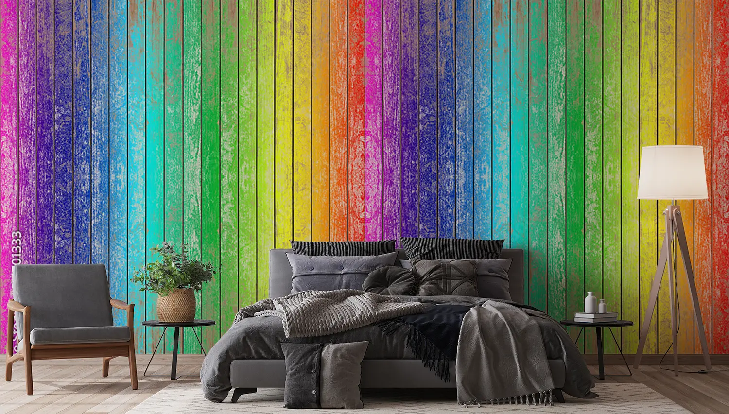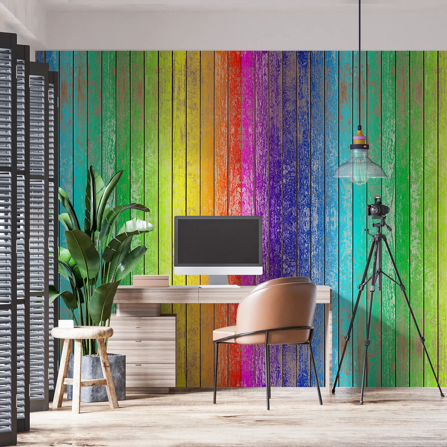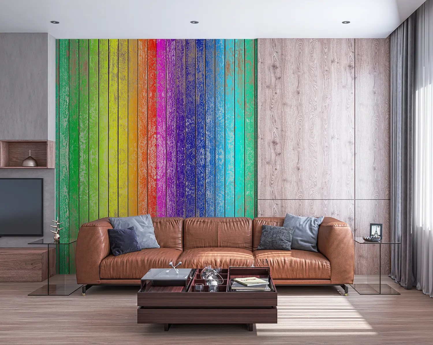 Transform your space with this stunning rainbow wood wall decor, featuring a colorful background of paint that adds a pop of creativity to any room. The vibrant hues and unique pattern create a captivating focal point, perfect for enhancing your home decor. Complement this piece with accents in shades of green, blue, and purple for a cohesive and stylish look.