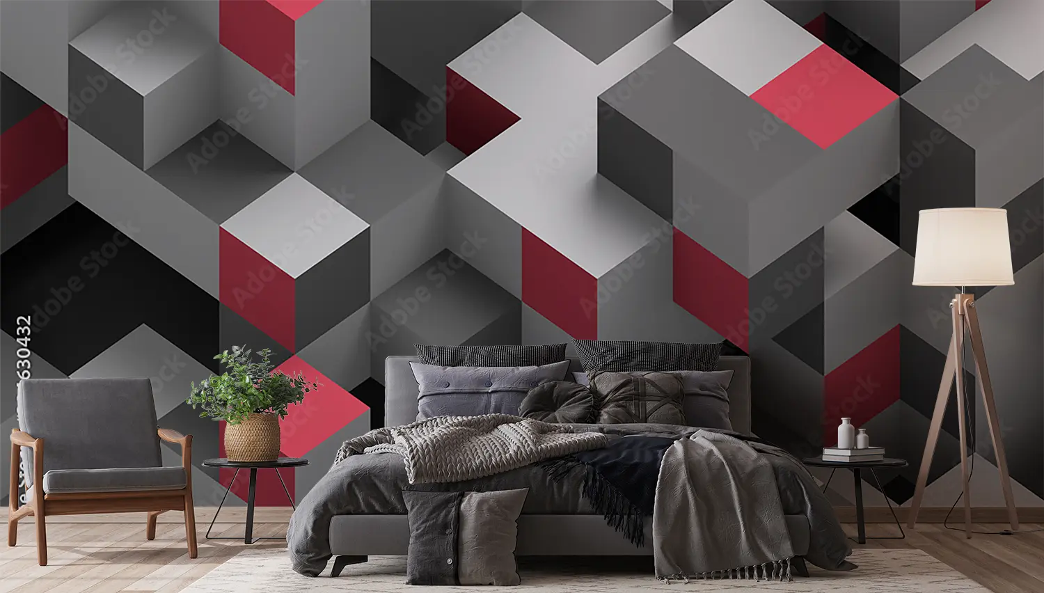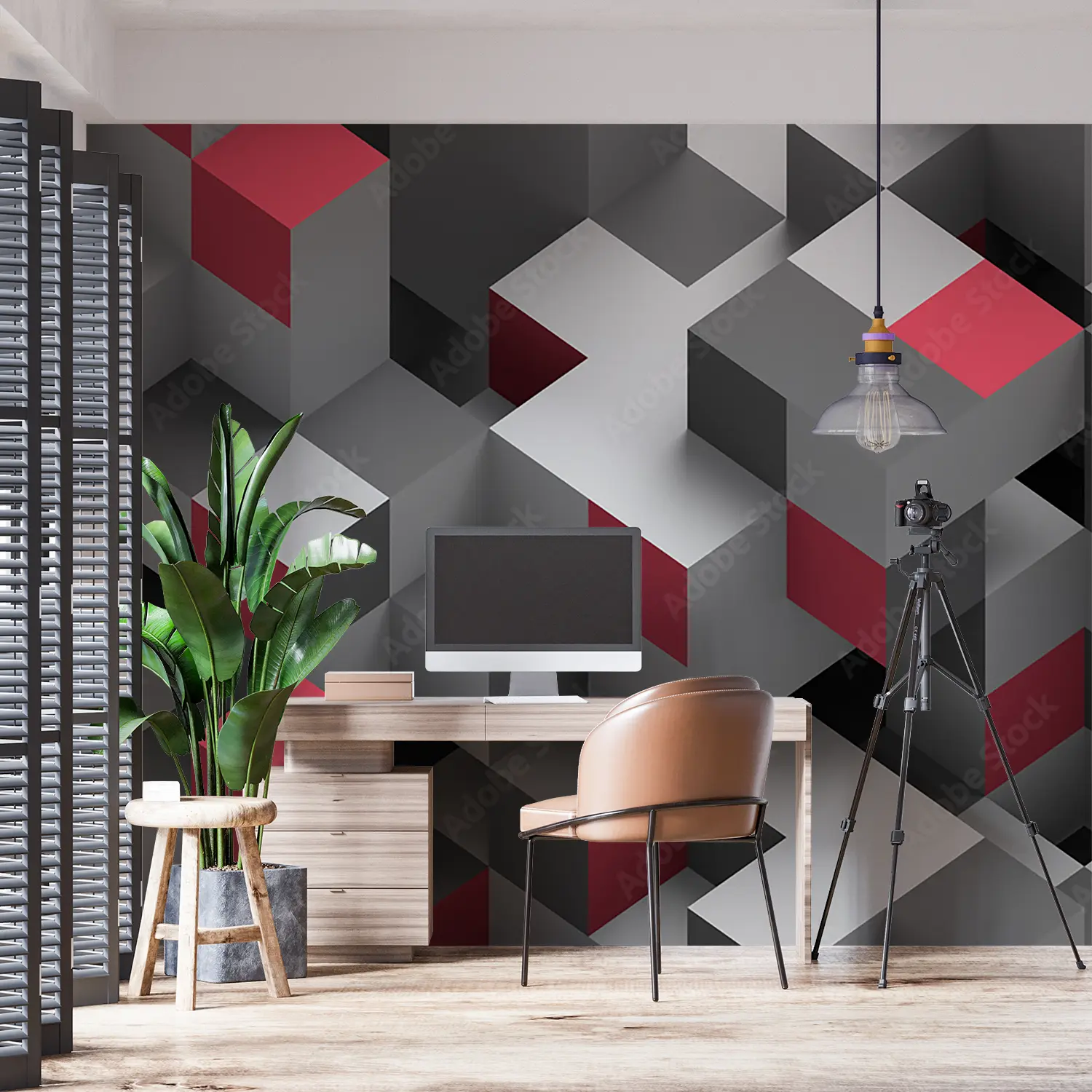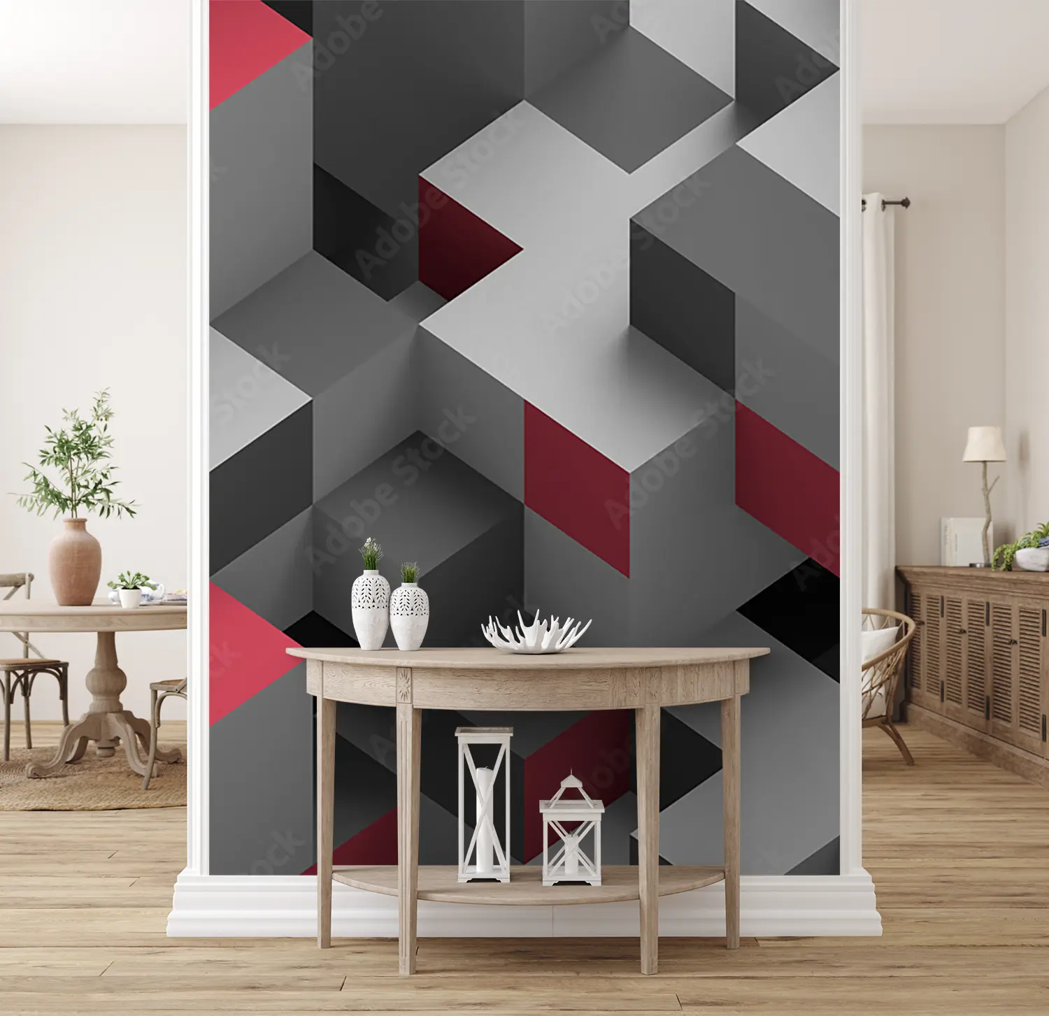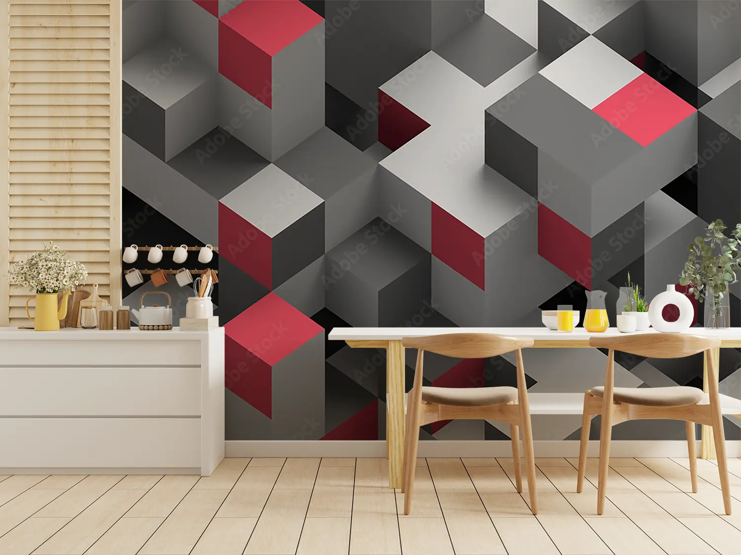 Elevate your home decor with this captivating wall art featuring a mesmerizing arrangement of red and white cubes. The intricate pattern adds a modern touch to any room, creating a visually striking focal point. Complementary colors to consider incorporating are grey, black, and hints of soft pink for a cohesive and stylish look.