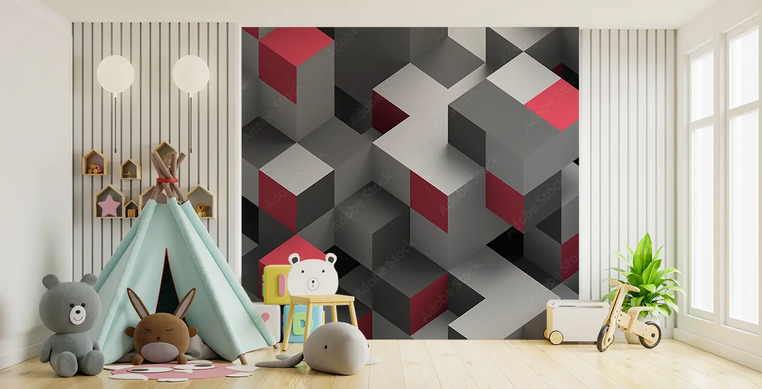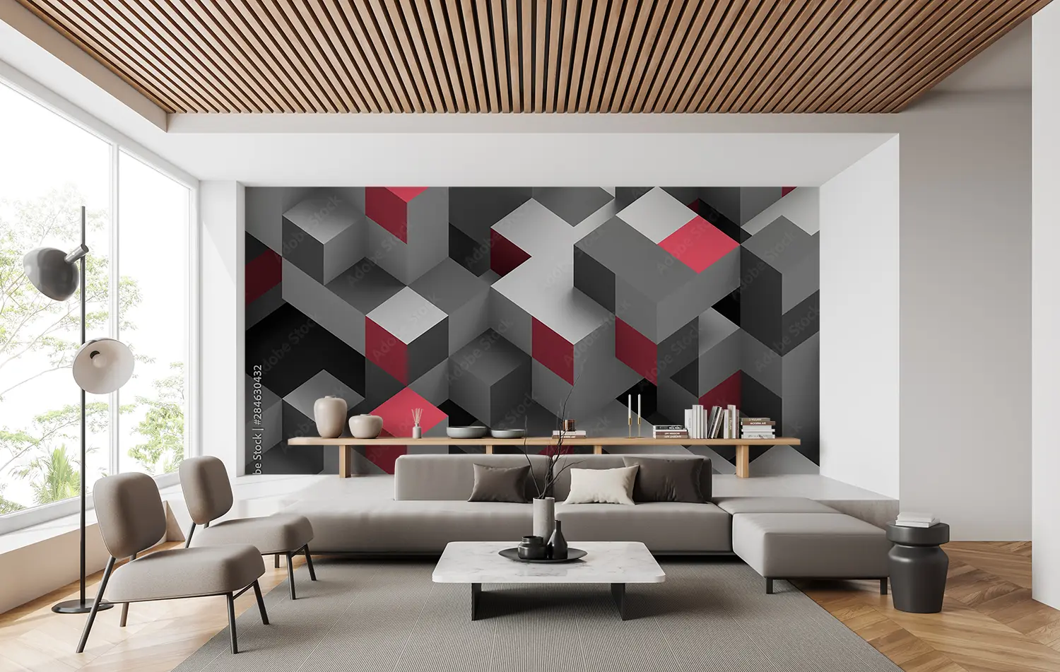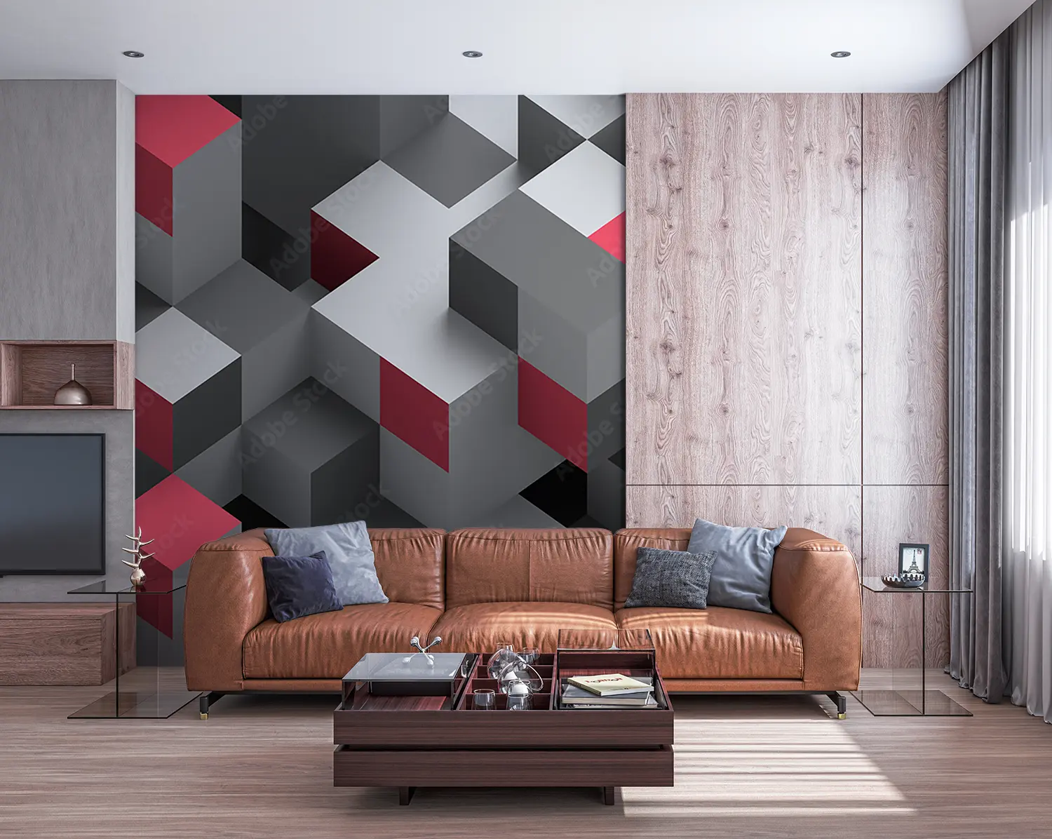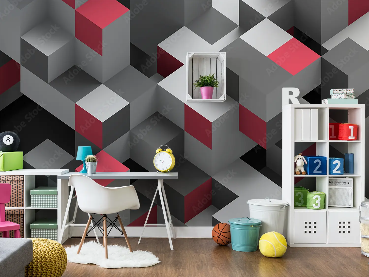 Elevate your home decor with this captivating wall art featuring a mesmerizing arrangement of red and white cubes. The intricate pattern adds a modern touch to any room, creating a visually striking focal point. Complementary colors to consider incorporating are grey, black, and hints of soft pink for a cohesive and stylish look.