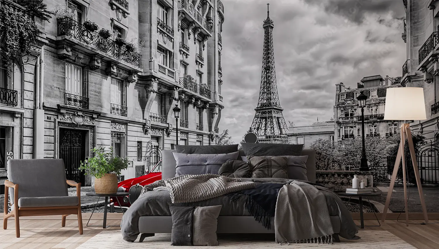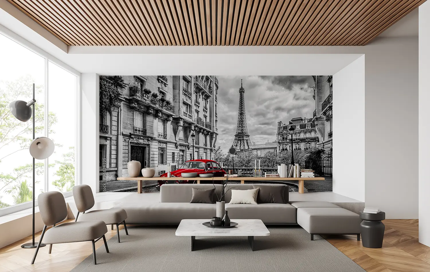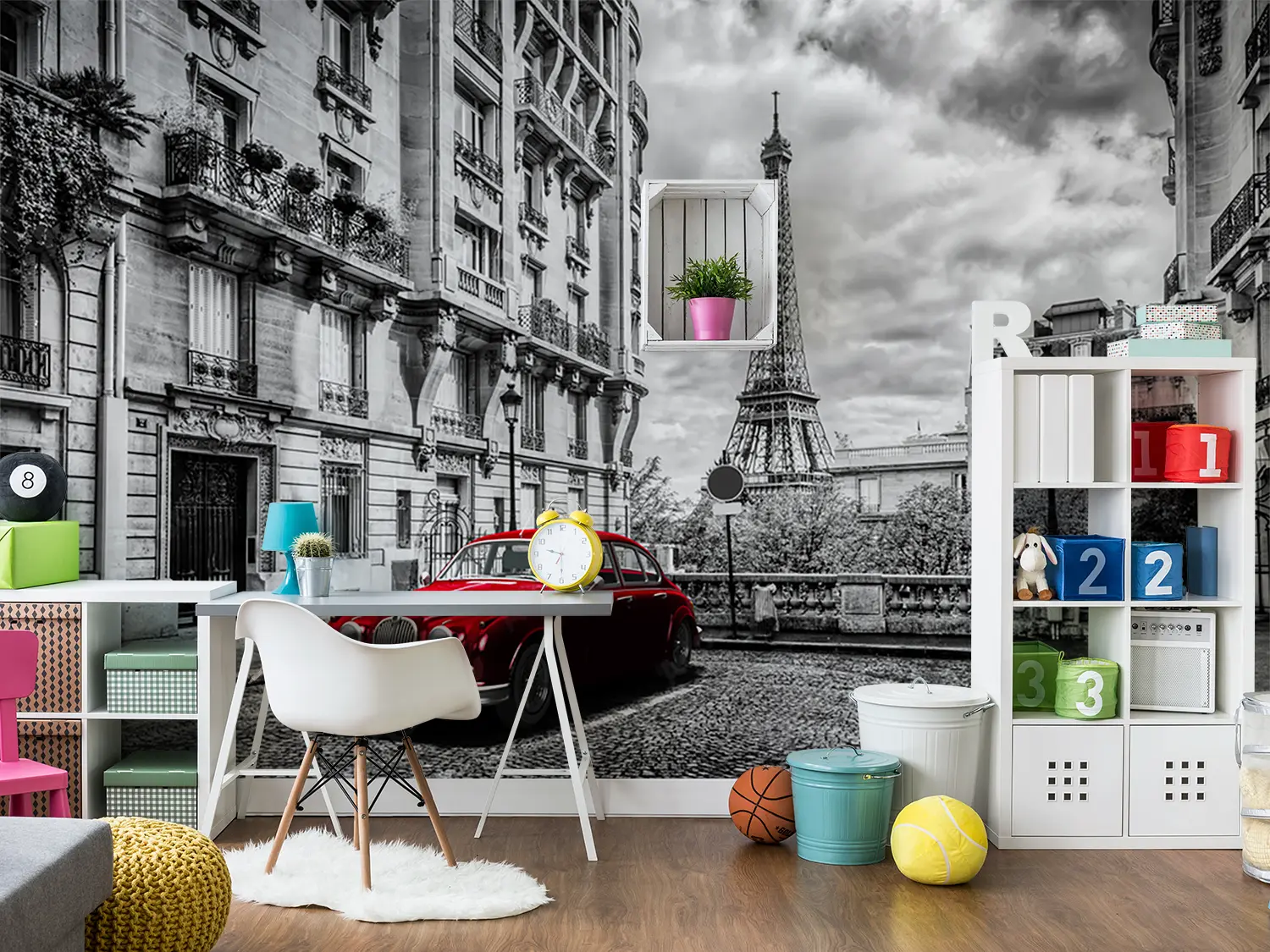 Bring the vibrant energy of a red car parked in front of a tall building into your home with this stunning wall art. The bold red color adds a pop of excitement to any space, while the sleek design creates a modern aesthetic. Complement the mural with accents in shades of black, white, and gray for a balanced and stylish look.