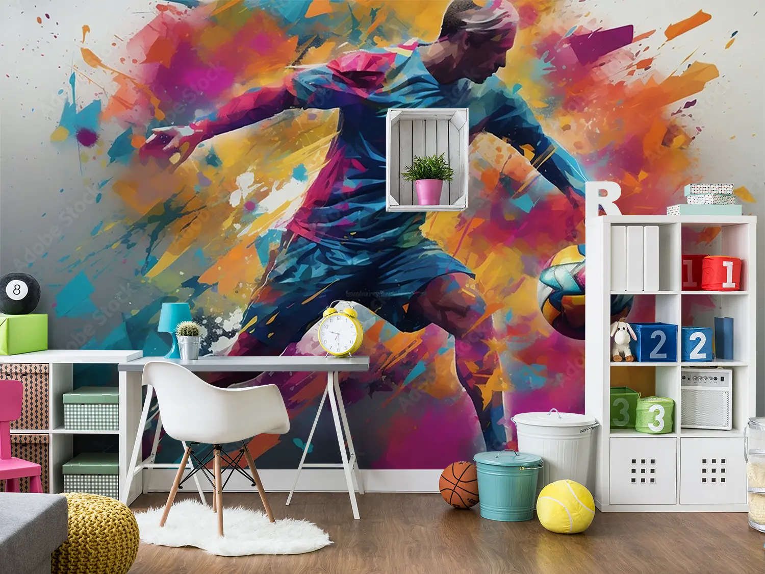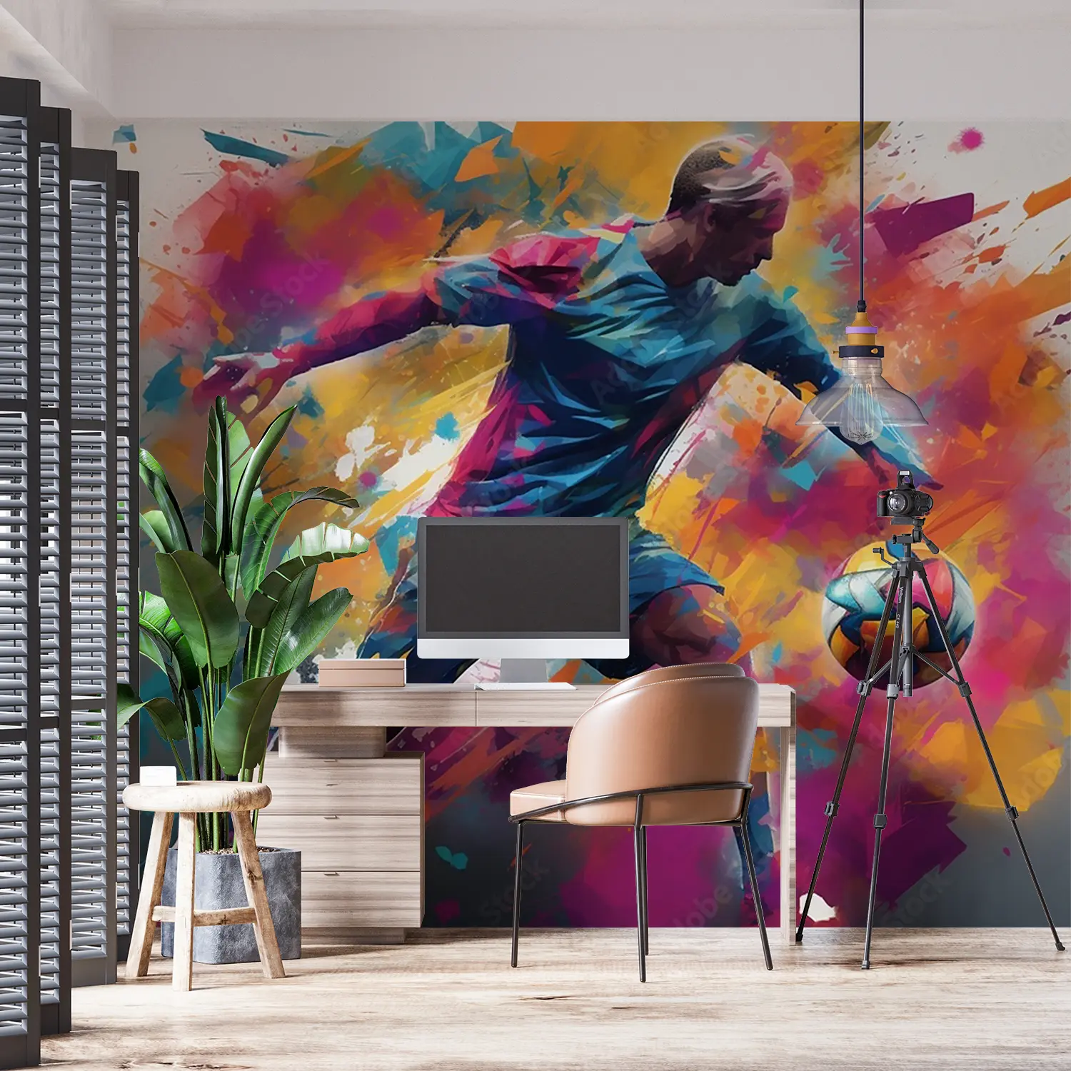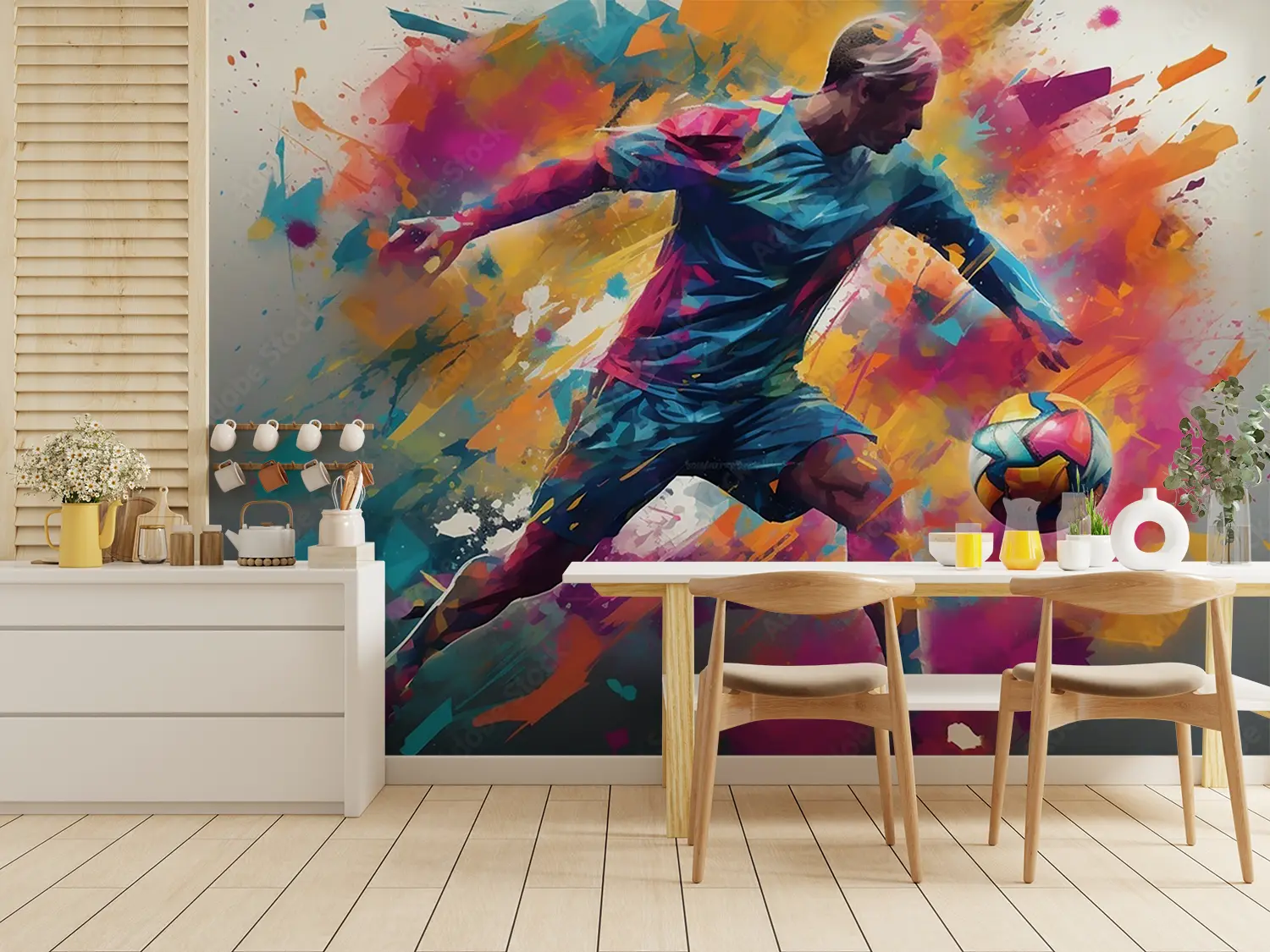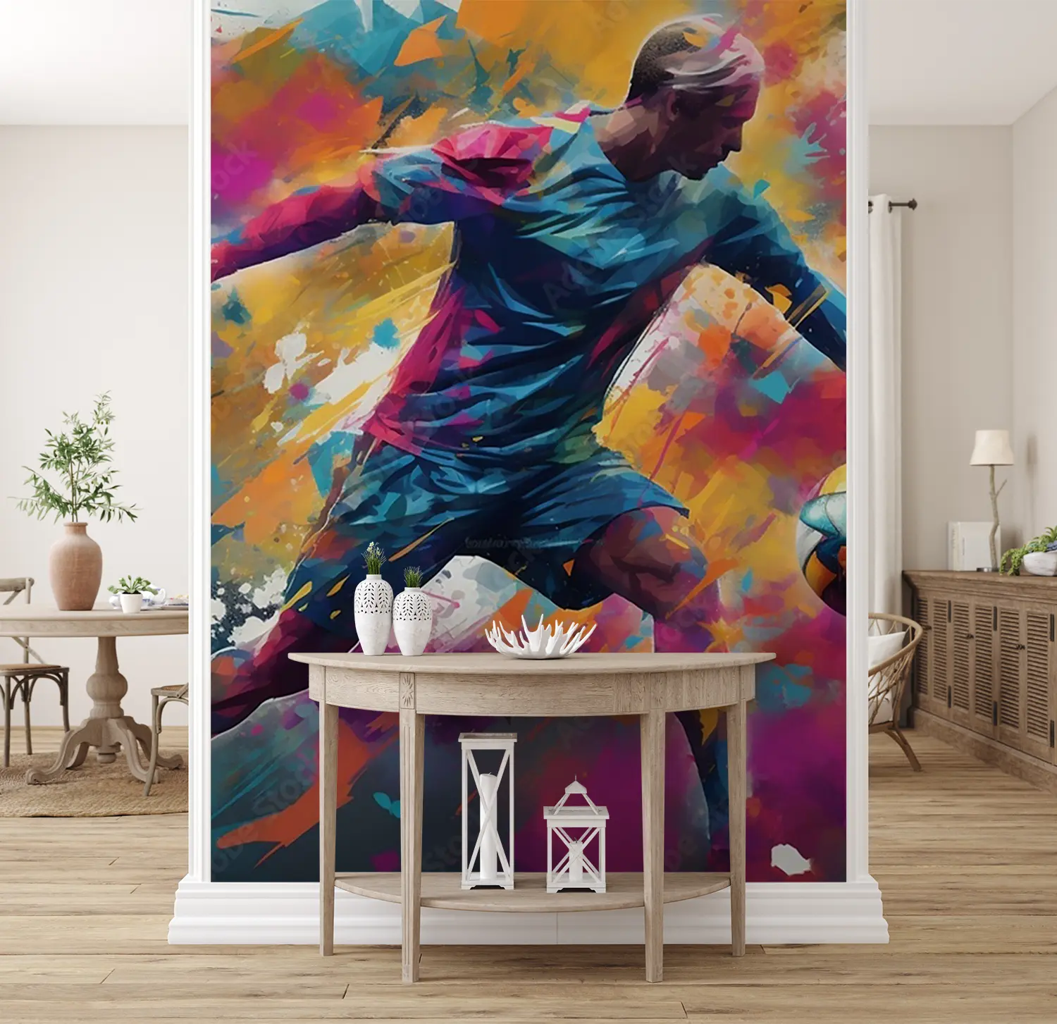 Elevate your space with a dynamic wall art featuring a man kicking a soccer ball against a colorful backdrop. This captivating piece adds energy and movement to any room, making it perfect for sports enthusiasts or anyone looking to infuse their decor with a touch of athleticism. Complementary colors like deep browns, soft blues, and warm grays will enhance its visual impact.
