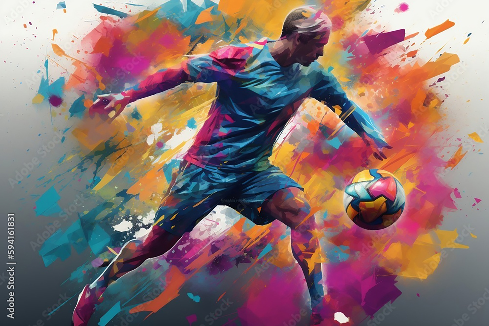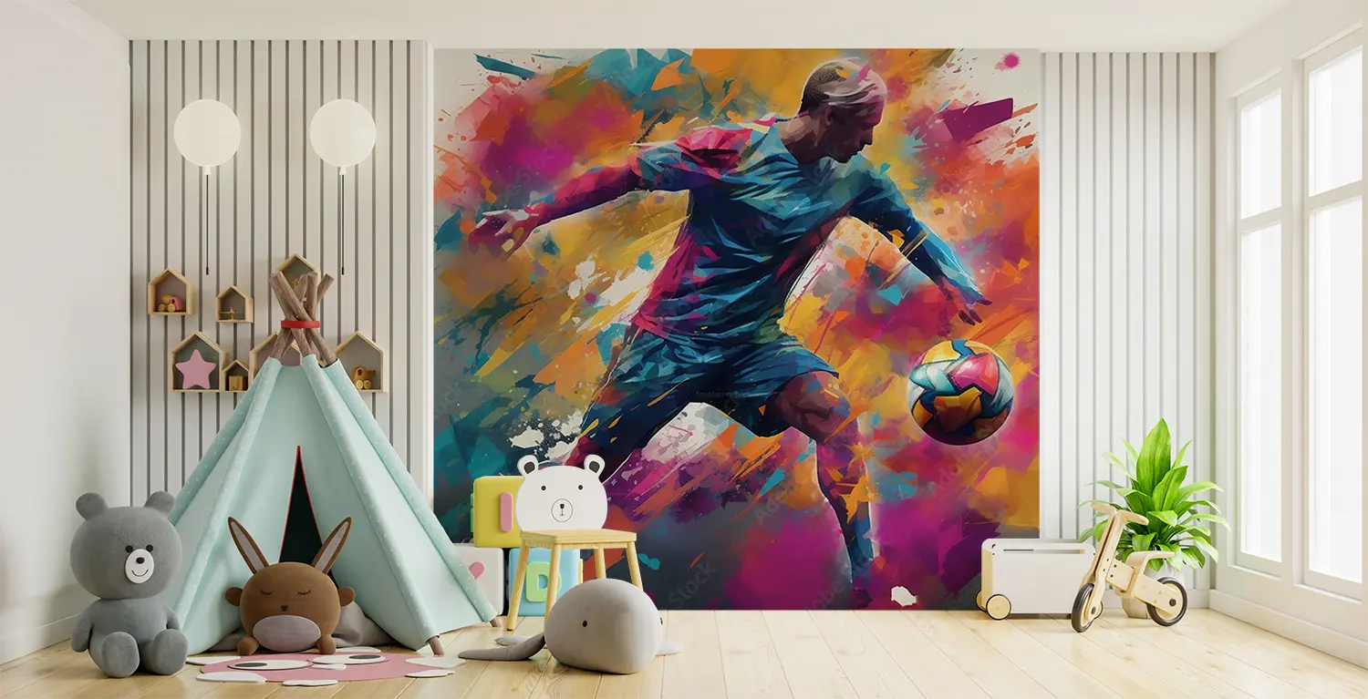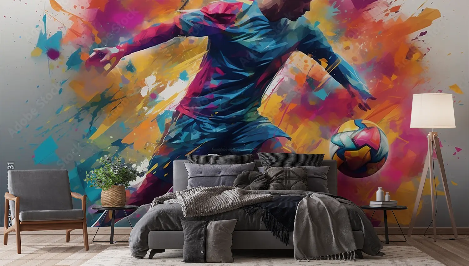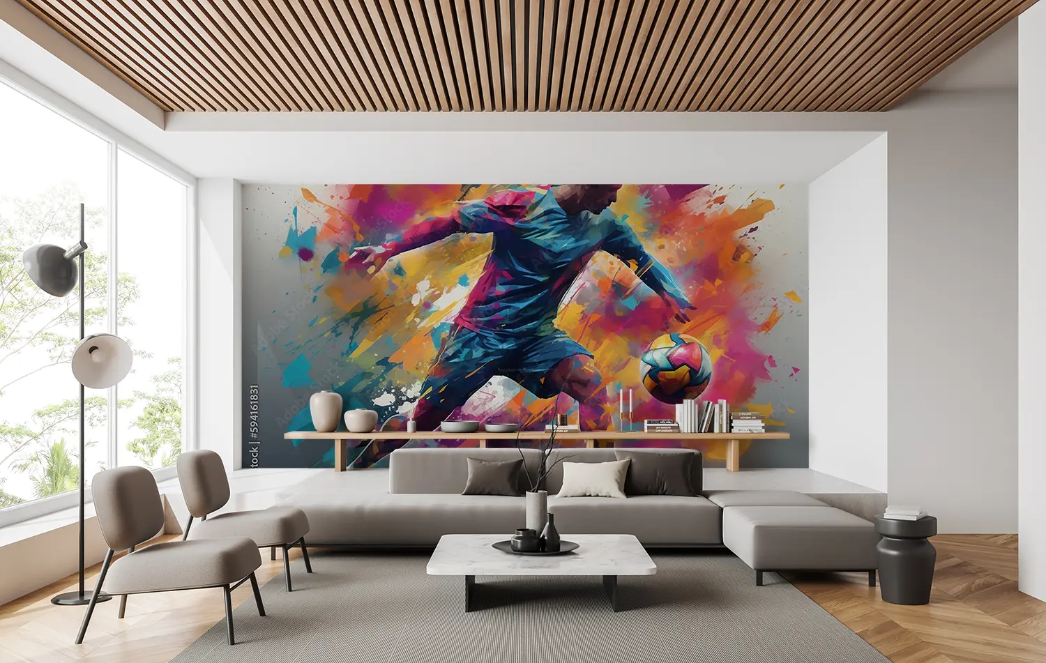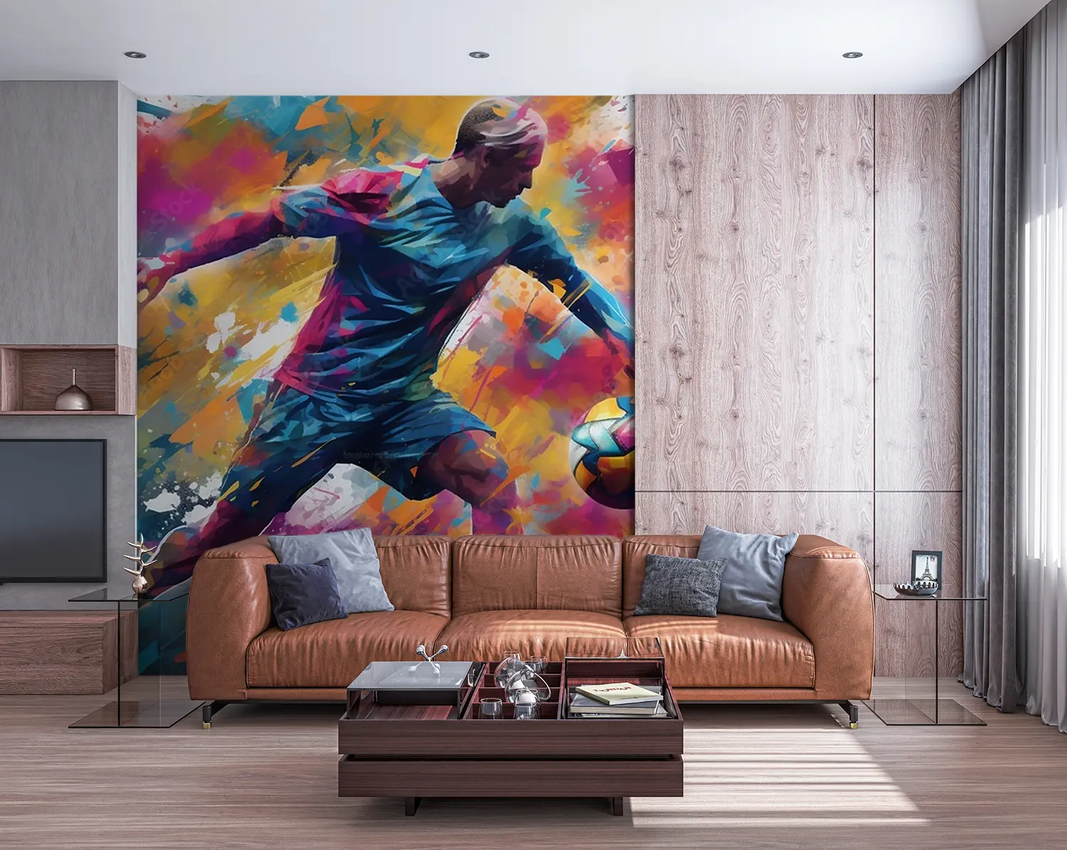 Elevate your space with a dynamic wall art featuring a man kicking a soccer ball against a colorful backdrop. This captivating piece adds energy and movement to any room, making it perfect for sports enthusiasts or anyone looking to infuse their decor with a touch of athleticism. Complementary colors like deep browns, soft blues, and warm grays will enhance its visual impact.