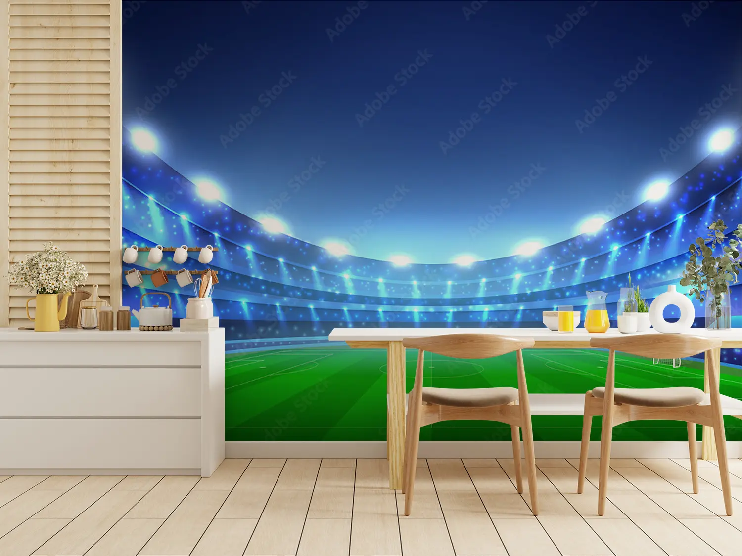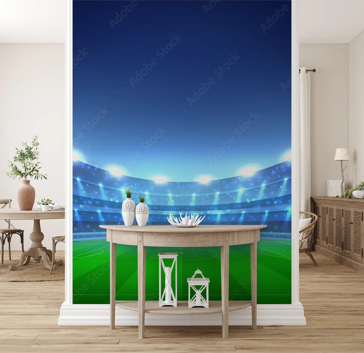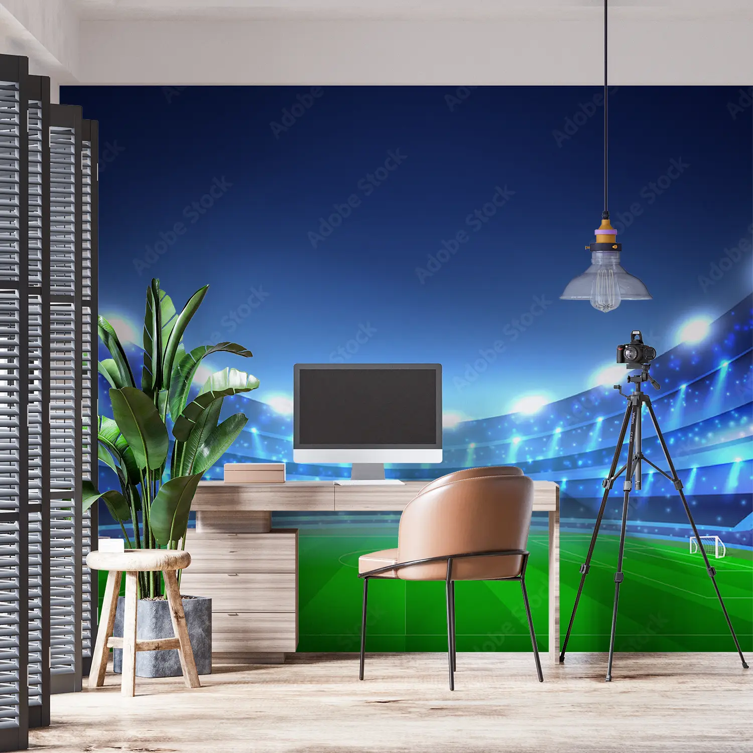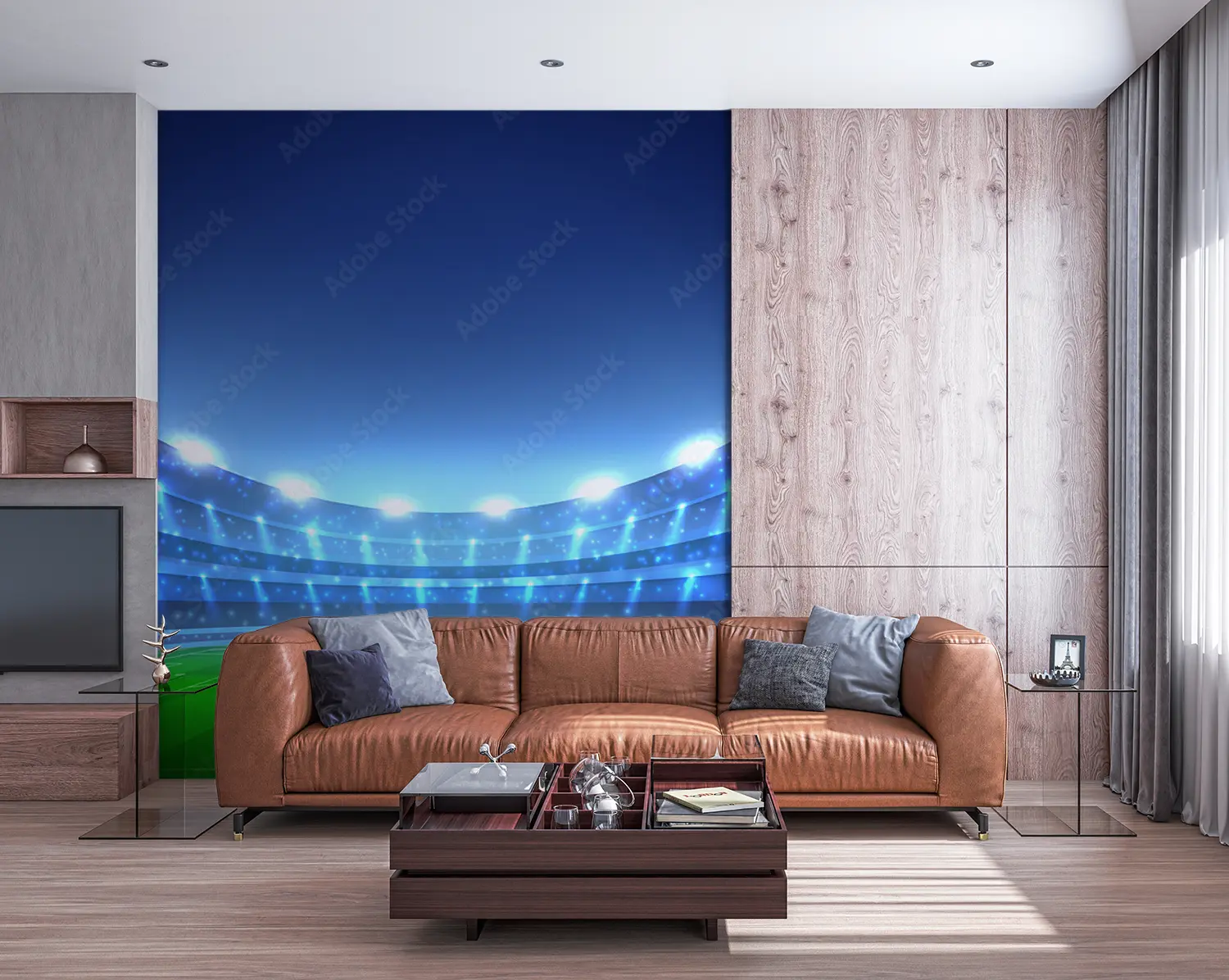 Elevate your space with this captivating image of a soccer stadium, featuring a lush green field and dazzling blue lights. Perfect for sports enthusiasts and art lovers alike, this wall art adds a dynamic touch to any room. Pair it with accents in shades of blue, green, and white to create a cohesive and inviting atmosphere.