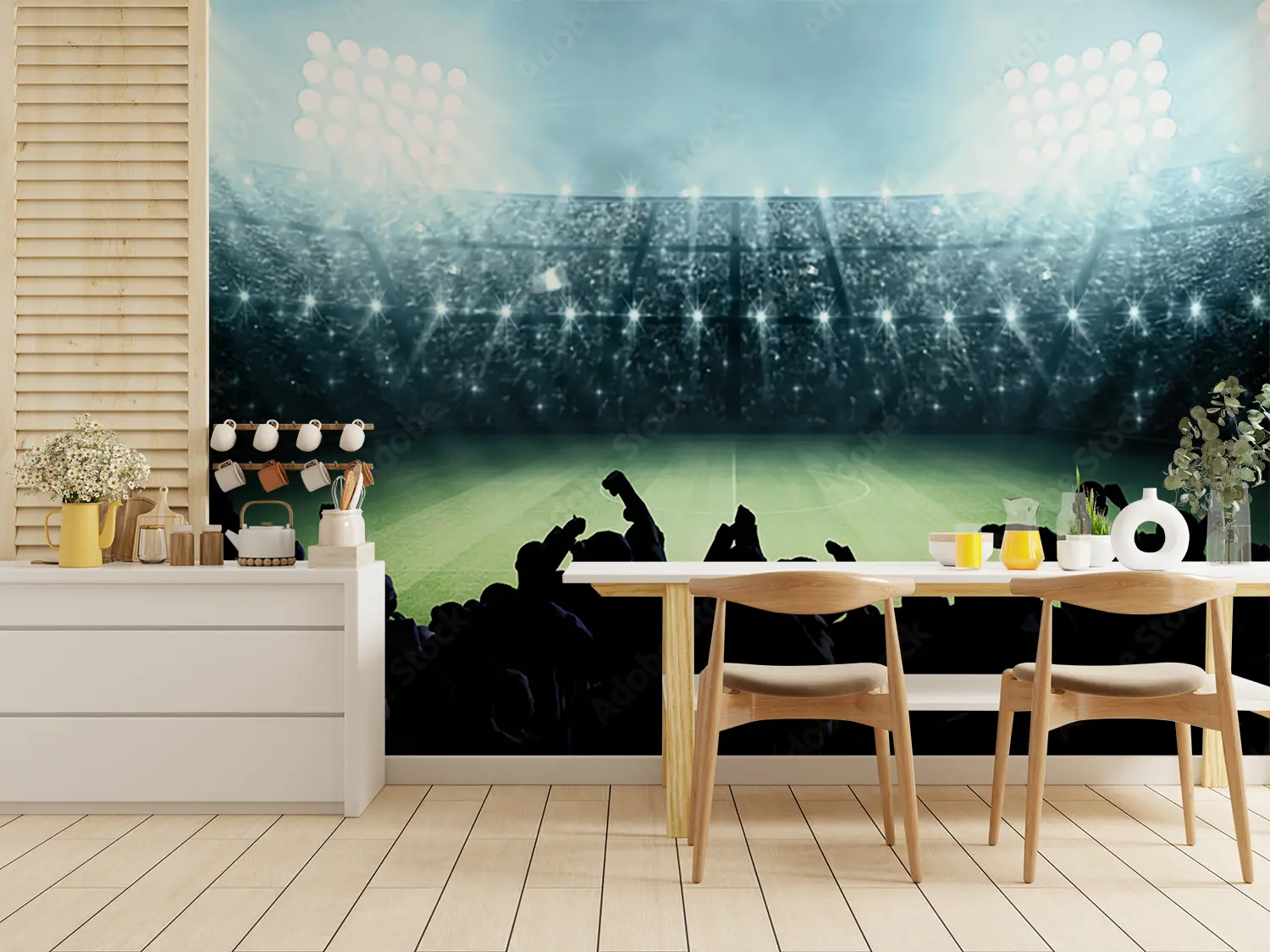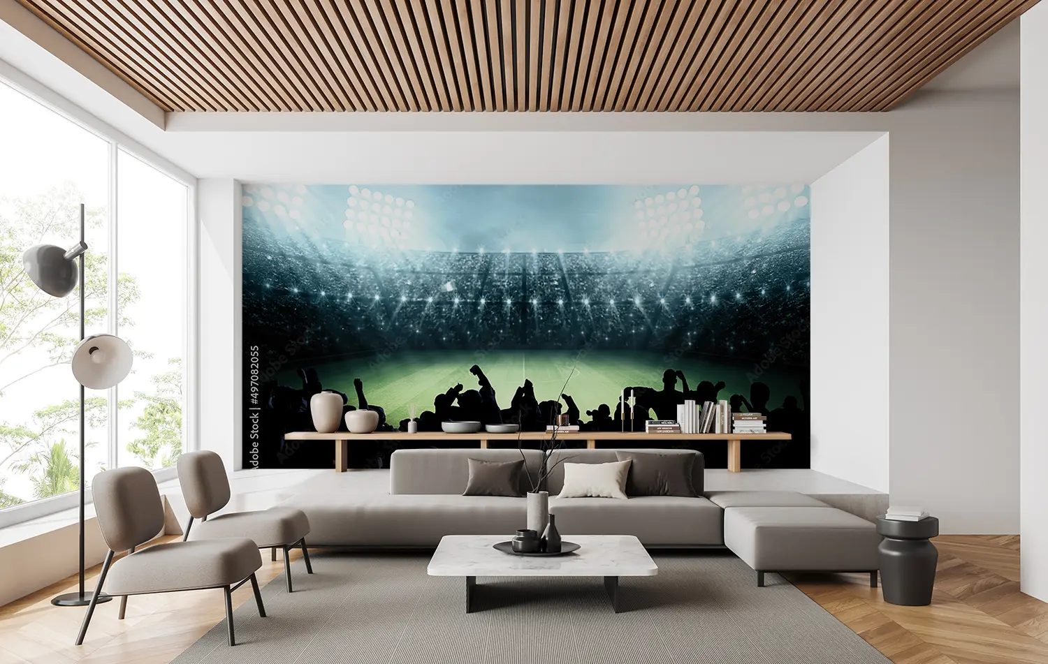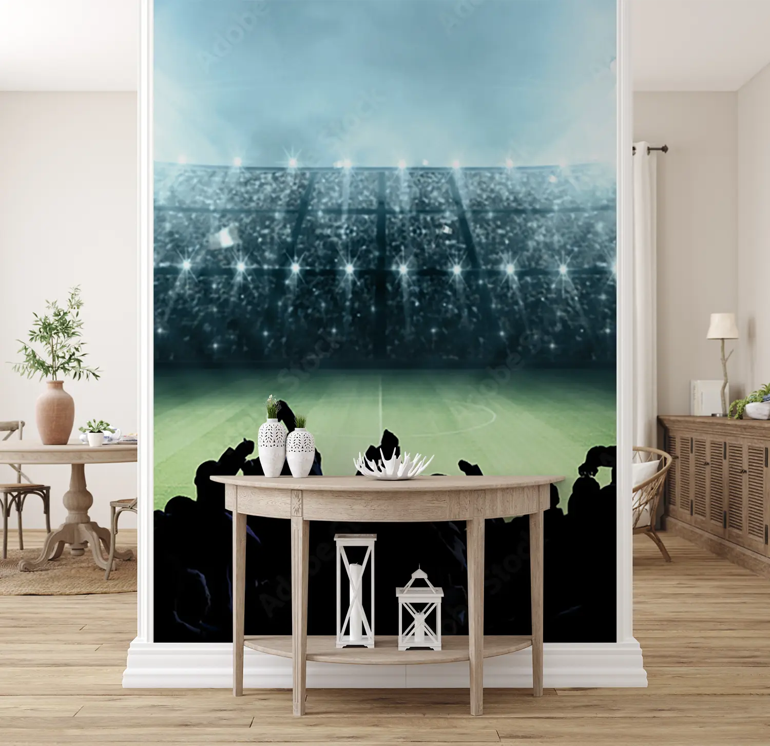 Bring the energy of a bustling stadium crowd into your home with this captivating wall art. The dynamic composition captures the excitement of a live event, making it a perfect focal point for any room. Complementary colors like teal, navy, and white will enhance the mural's lively atmosphere and add a modern touch to your decor.