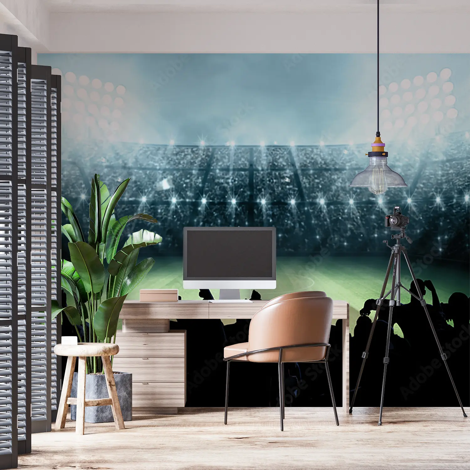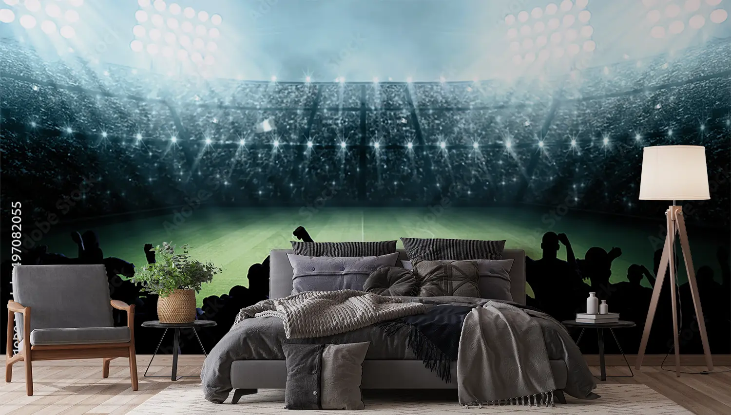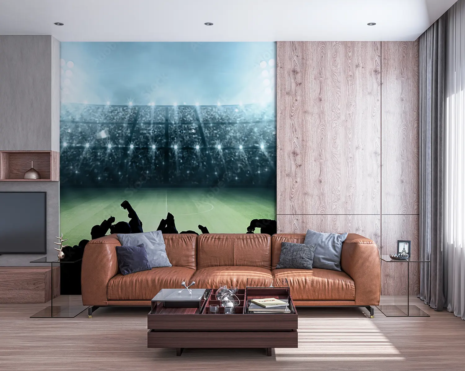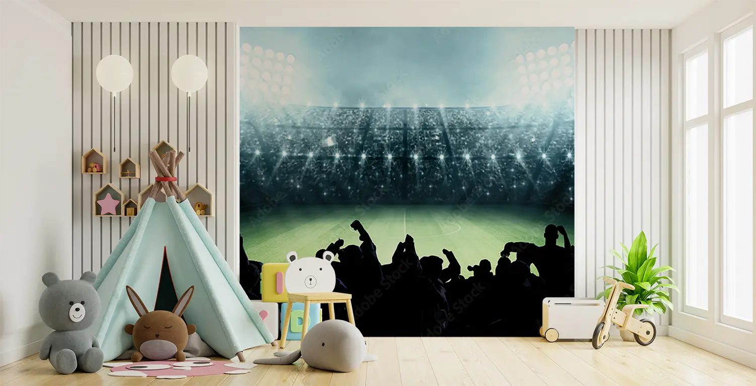Bring the energy of a bustling stadium crowd into your home with this captivating wall art. The dynamic composition captures the excitement of a live event, making it a perfect focal point for any room. Complementary colors like teal, navy, and white will enhance the mural's lively atmosphere and add a modern touch to your decor.
