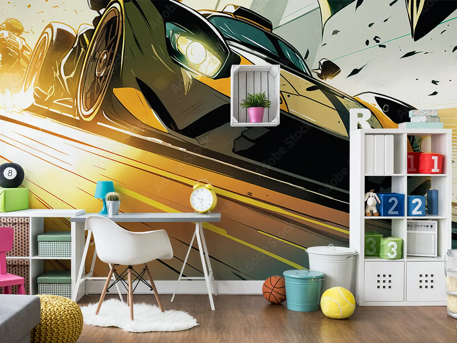 Vibrant Yellow Race Car Home Decor
