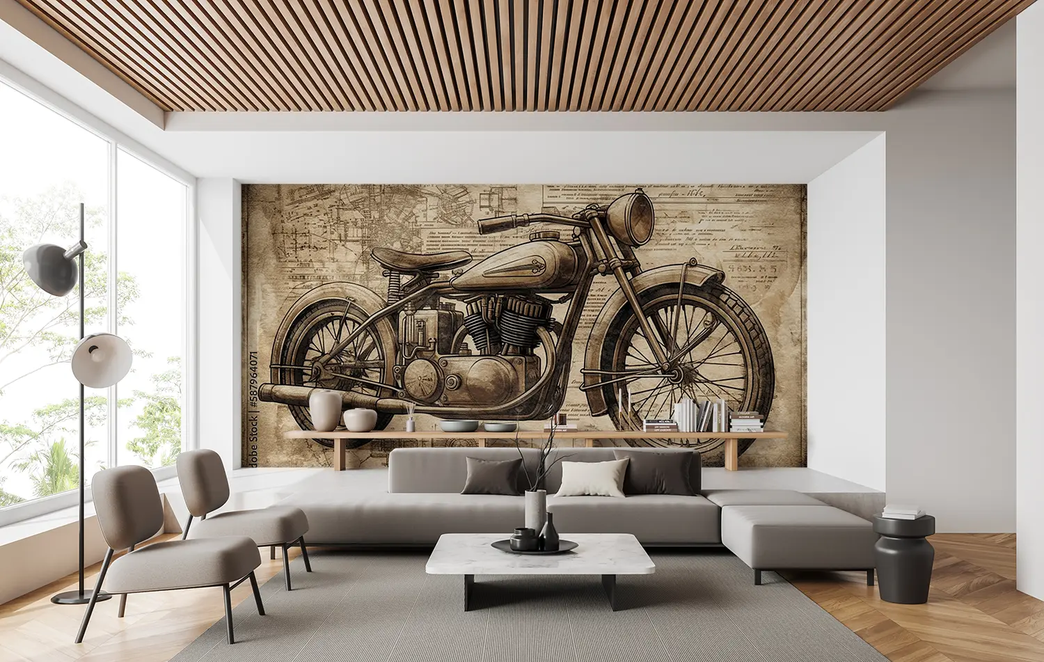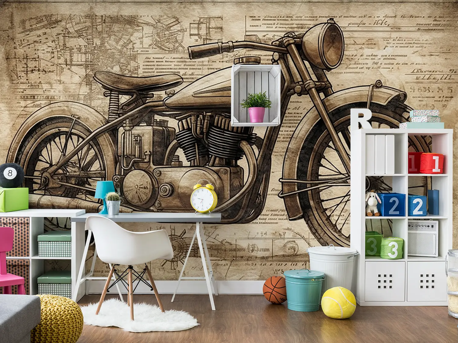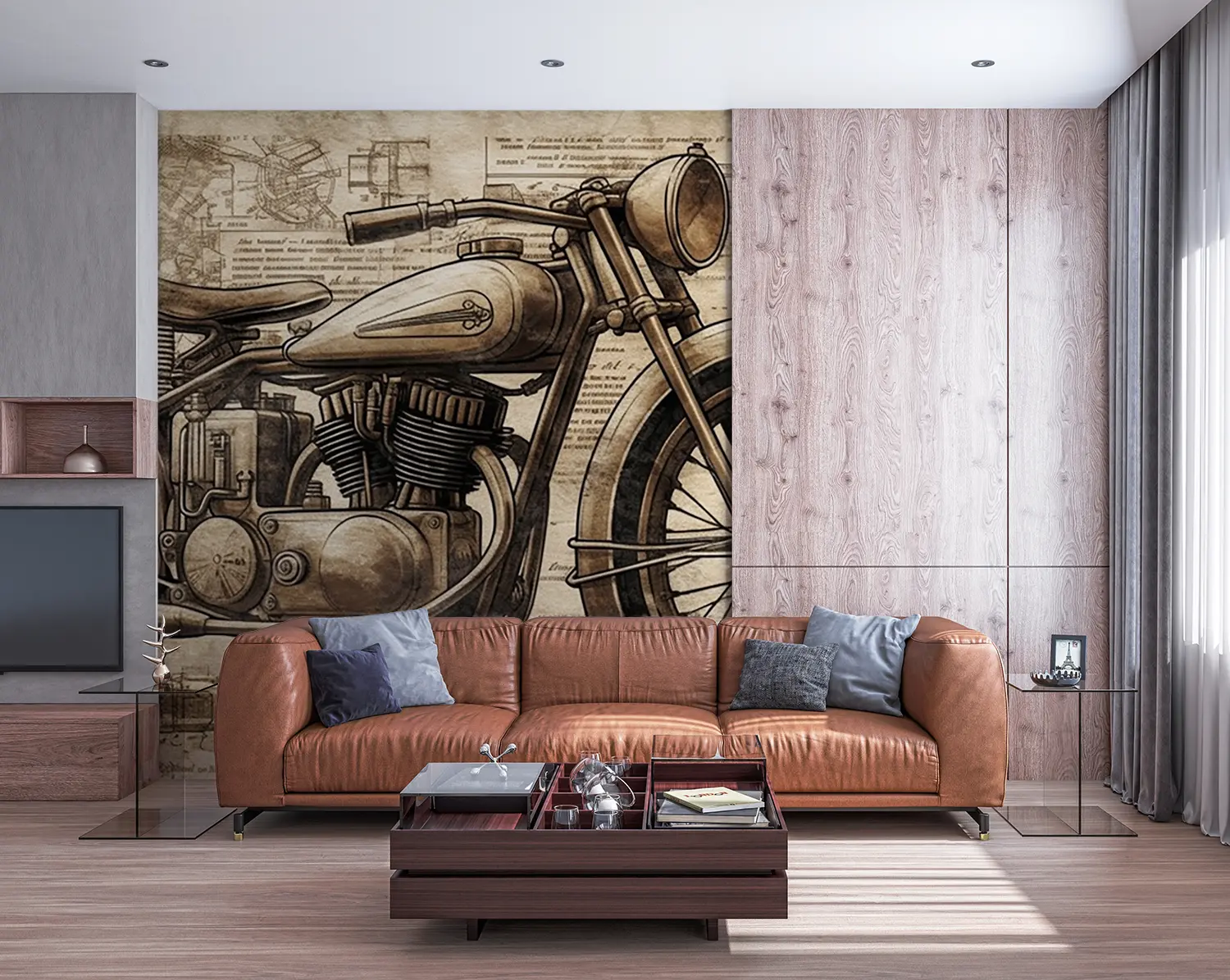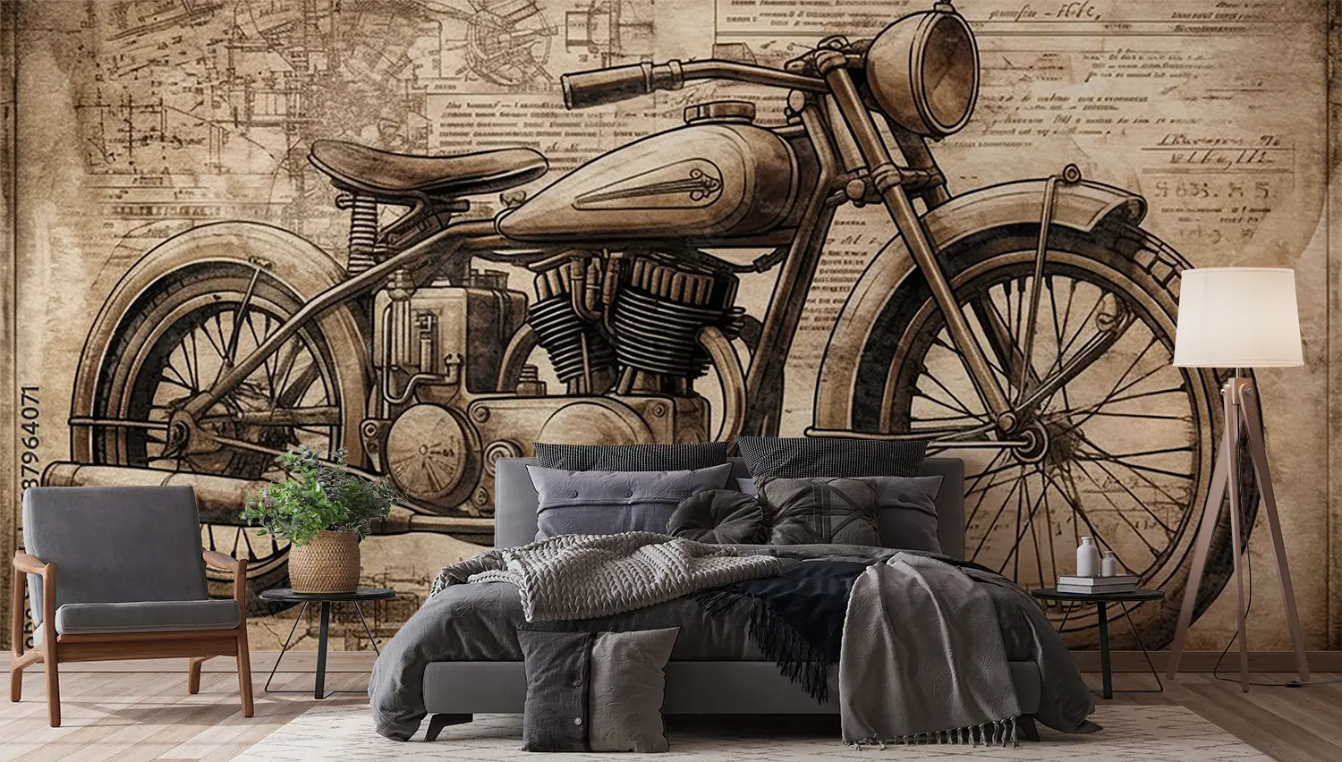 Transform your space with a captivating vintage motorcycle drawing that exudes artistic charm. This piece adds a touch of nostalgia and personality to any room, making it a focal point of your home decor. Complementary colors to consider include warm browns, soft creams, and deep greys for a cohesive and inviting ambiance.