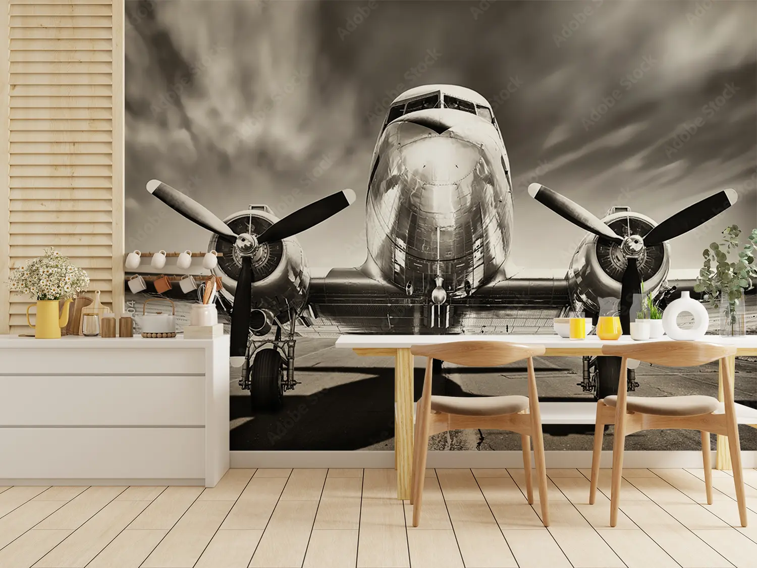 Elevate your space with this captivating black and white vintage plane photo. The timeless appeal of the propeller plane exudes a sense of adventure and nostalgia, making it a perfect addition to any home decor. Pair it with shades of silver, white, and earth tones for a cohesive and stylish look that will transform your space into a gallery-worthy masterpiece.